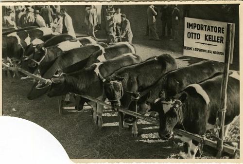 Foto in zwart-wit van vaarzen op de markt in Italië ...