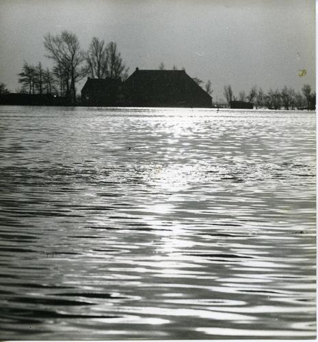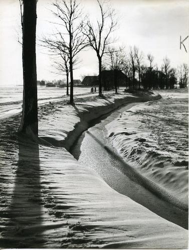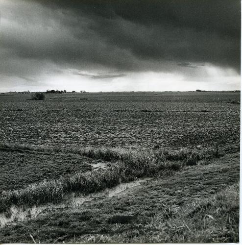 Foto in zwart-wit van ondergelopen land door J.D. de...