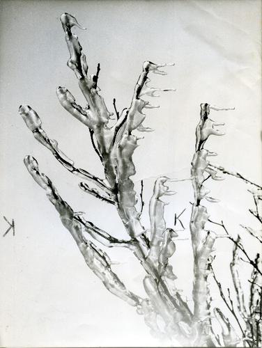 Foto in zwart-wit van beijzelde takken door J.D. de ...