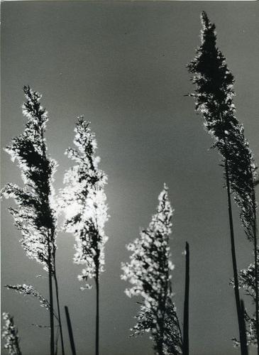 Foto in zwart-wit van rietpluimen door J.D. de Jong,...