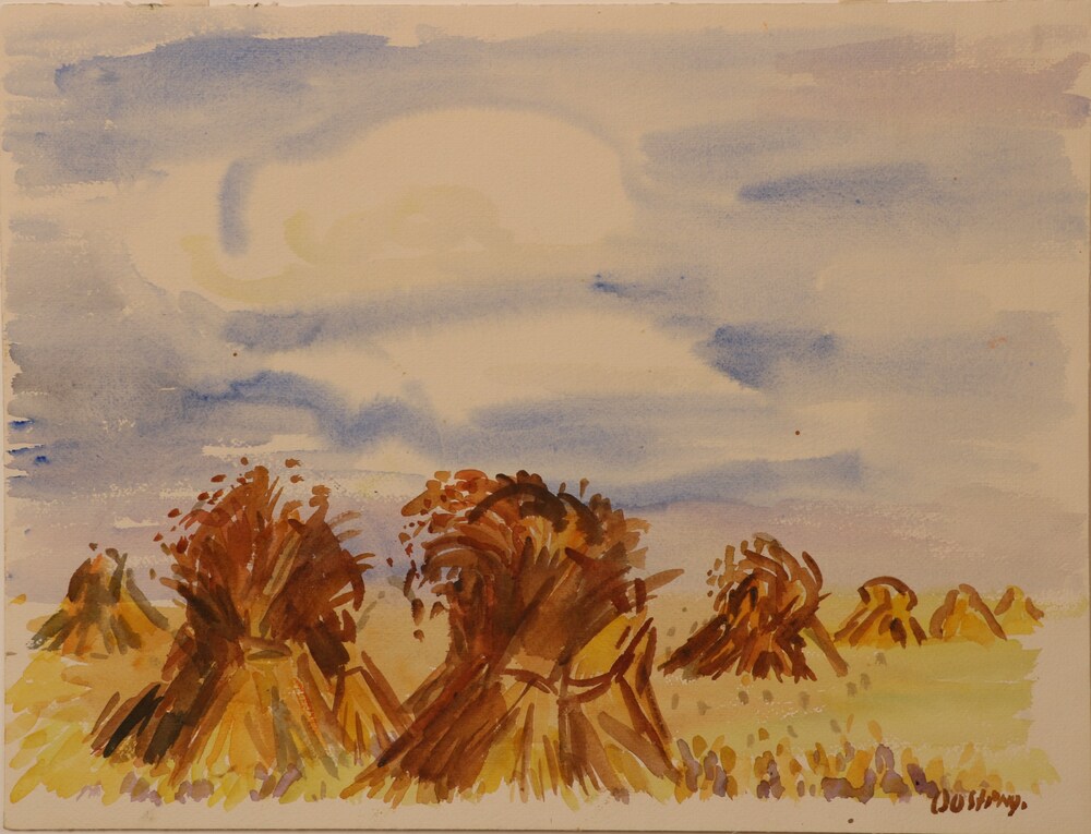 Landschap met korenschoven