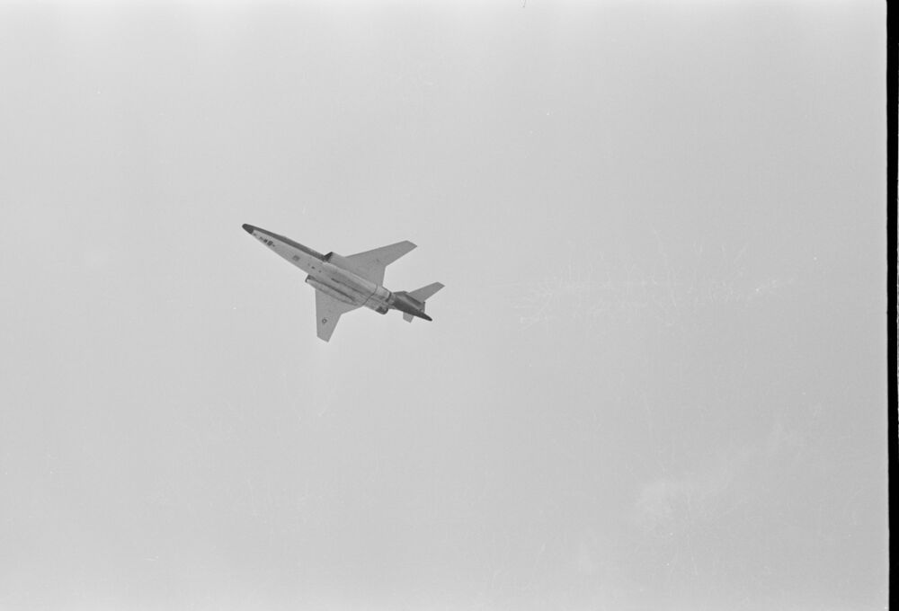 Convair F-102A Delta Dagger 32 FIS USAF in de vlucht.