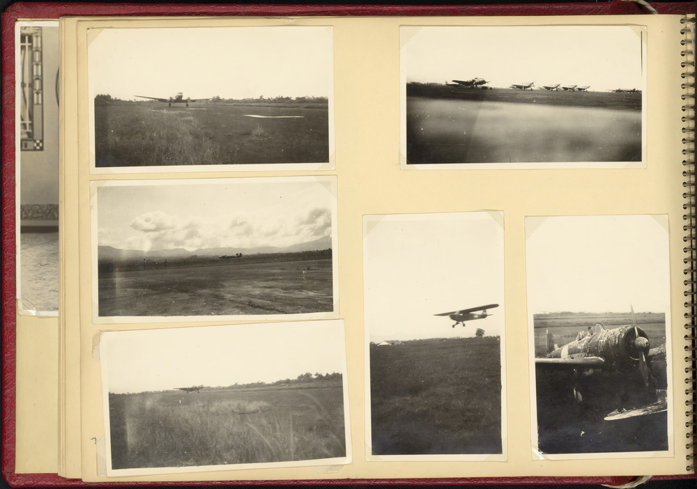 Album pagina met 6 foto's van vliegtuigen. Boven een...