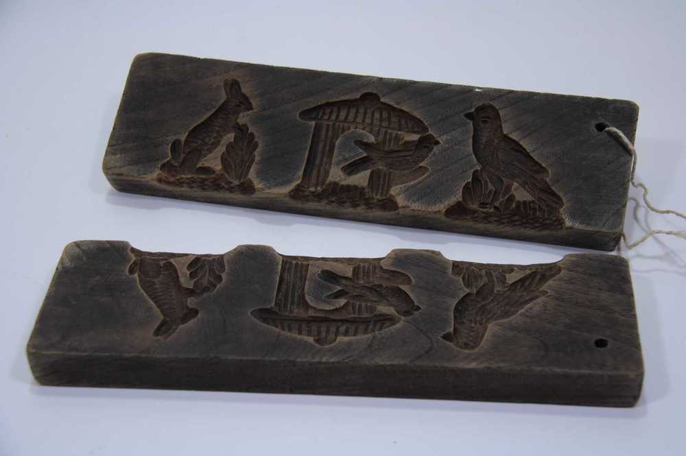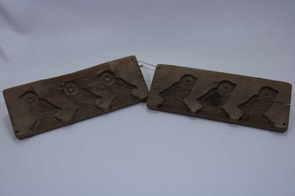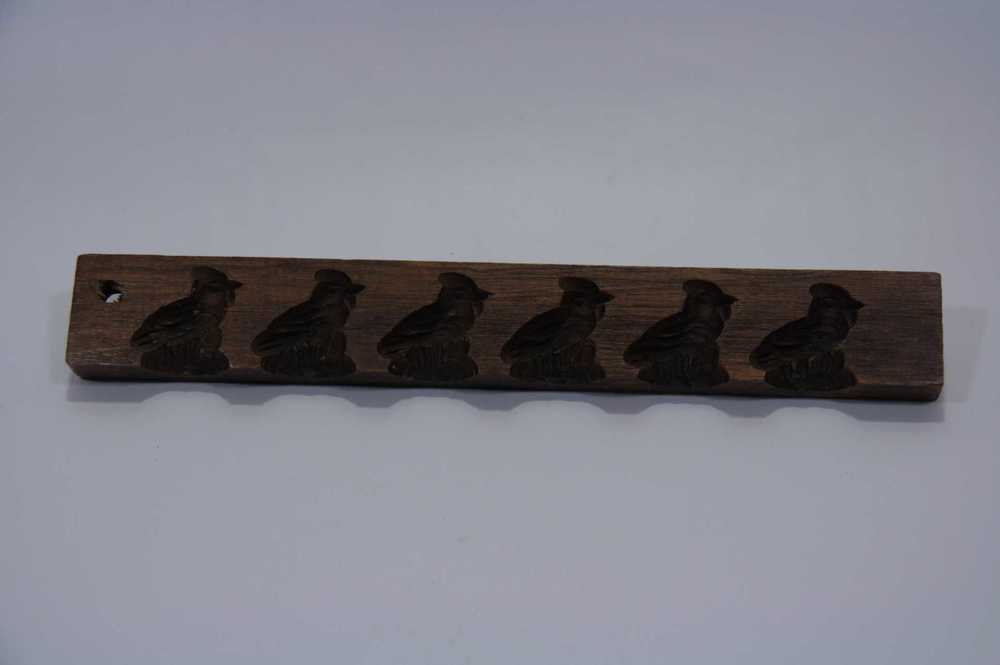 Suikerwerkplank van hout met 3 figuren: een vogel, v...