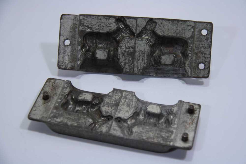 Chocoladevorm van metaal in de vorm van 2 ezels