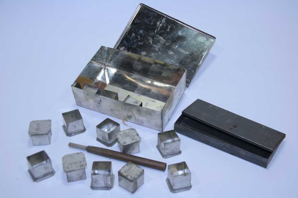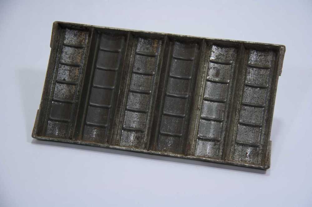 Chocoladevorm van metaal voor 6 sigaren uit de 20e eeuw
