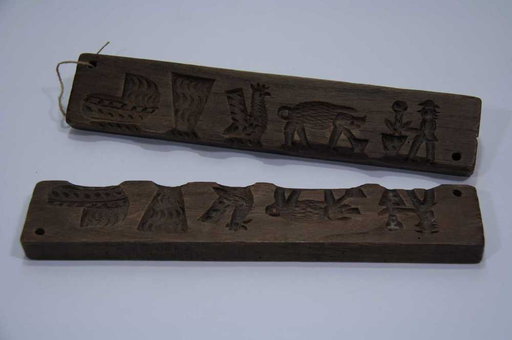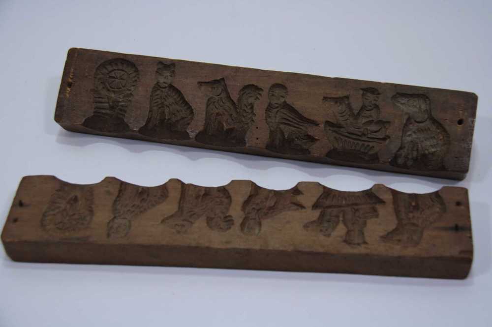 Suikerwerkplank van hout met 5 figuren, o.a. wieg, h...