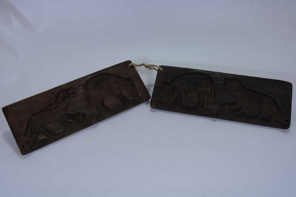 Suikerwerkplank van hout met 6 dierfiguren, o.a. een...