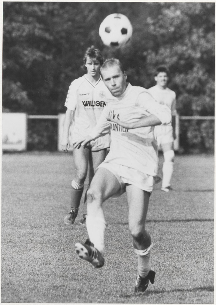 Op de foto een voetbalwedstrijd.