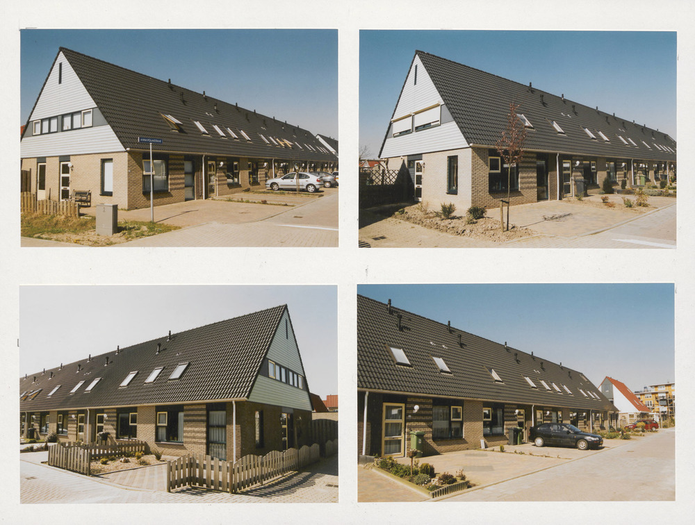 Vier foto's van huizen in verschillende straten: Ann...
