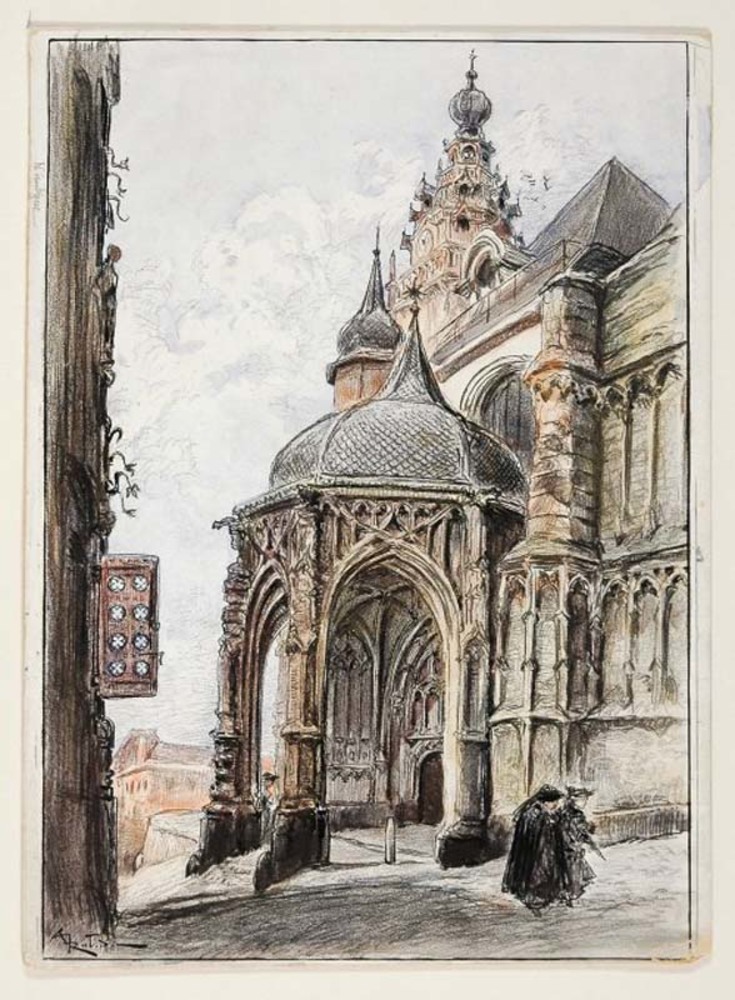 Het zuiderportaal van de Stevenskerk en de gevel van...