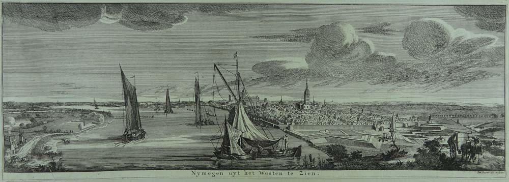 Nymegen uit het Westen te zien