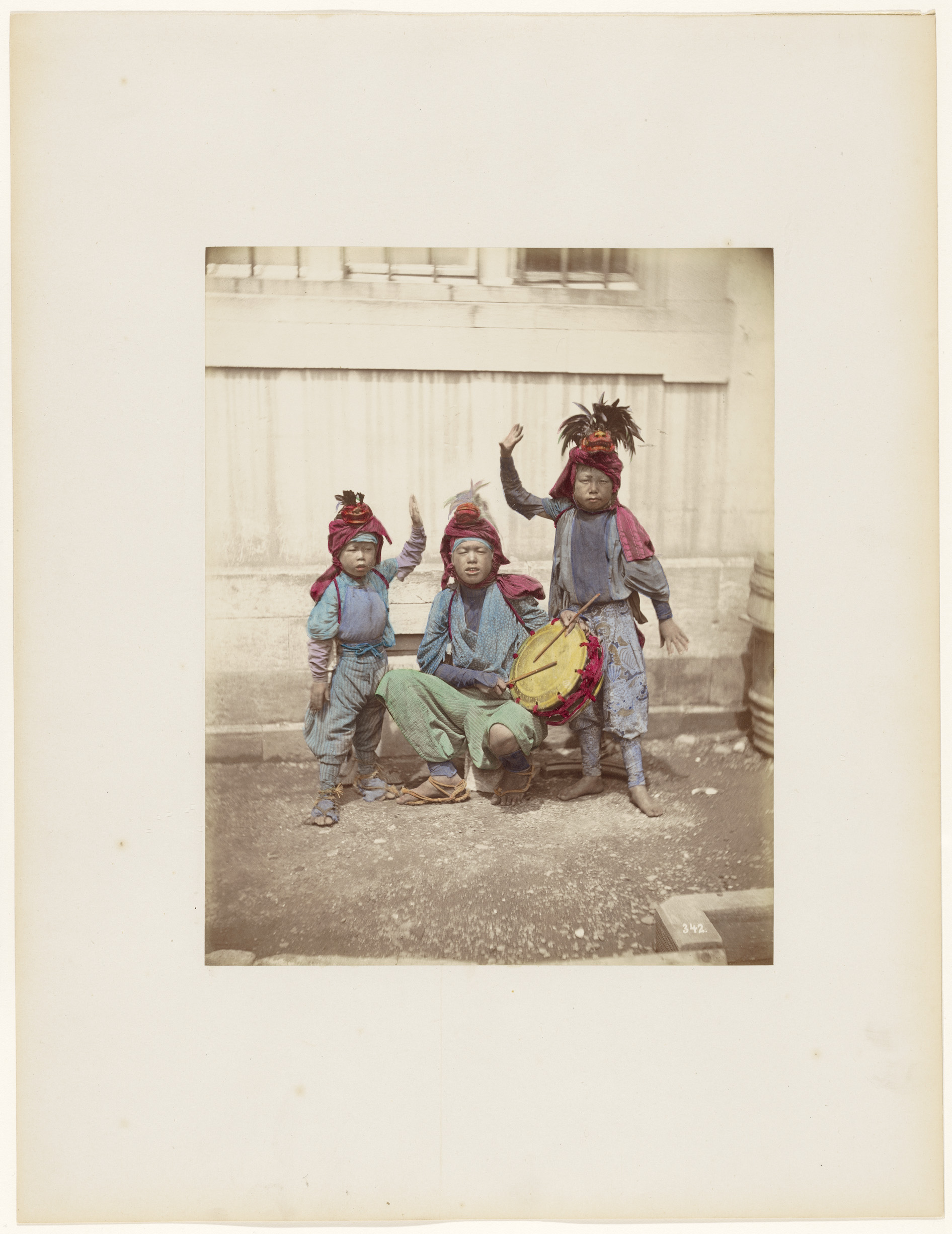 Jonge Japanse straatartiesten met een trommel