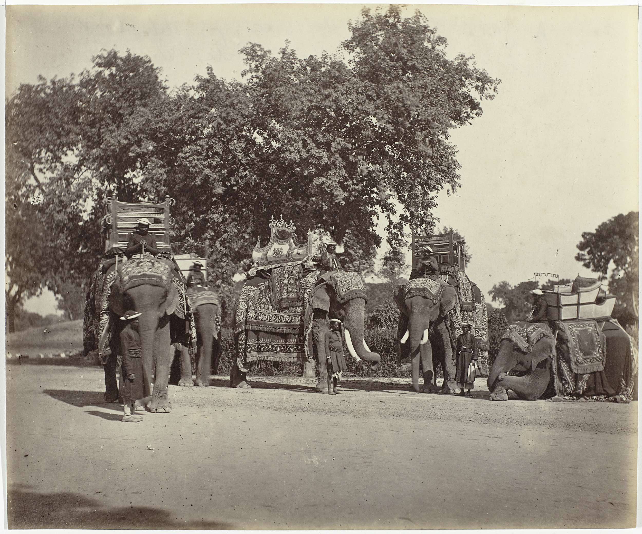 Caparisoned viceroyal elephants, Varanasi (Benares),...