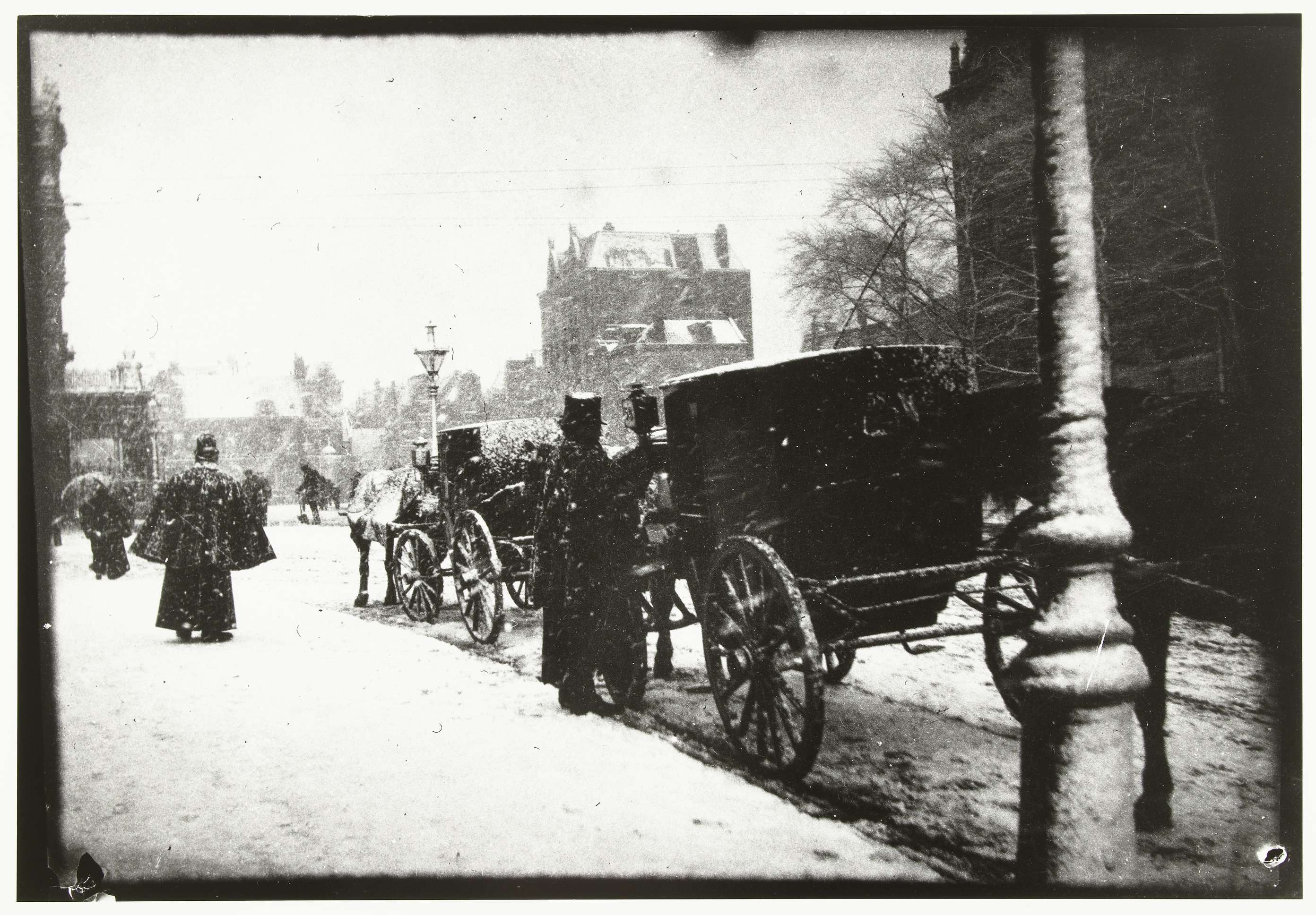 Paarden met rijtuig op het Leidseplein in Amsterdam