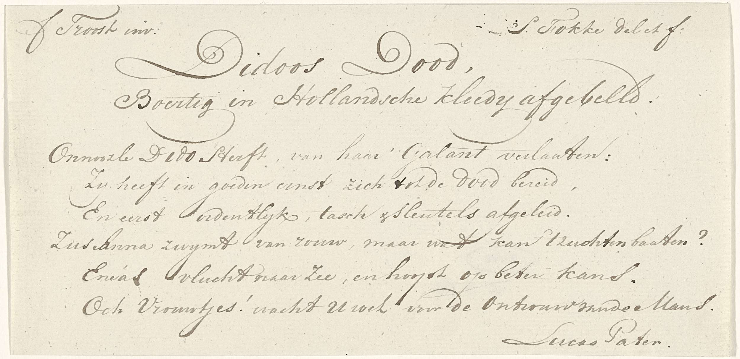 Handgeschreven onderschrift voor prent "De dood van ...