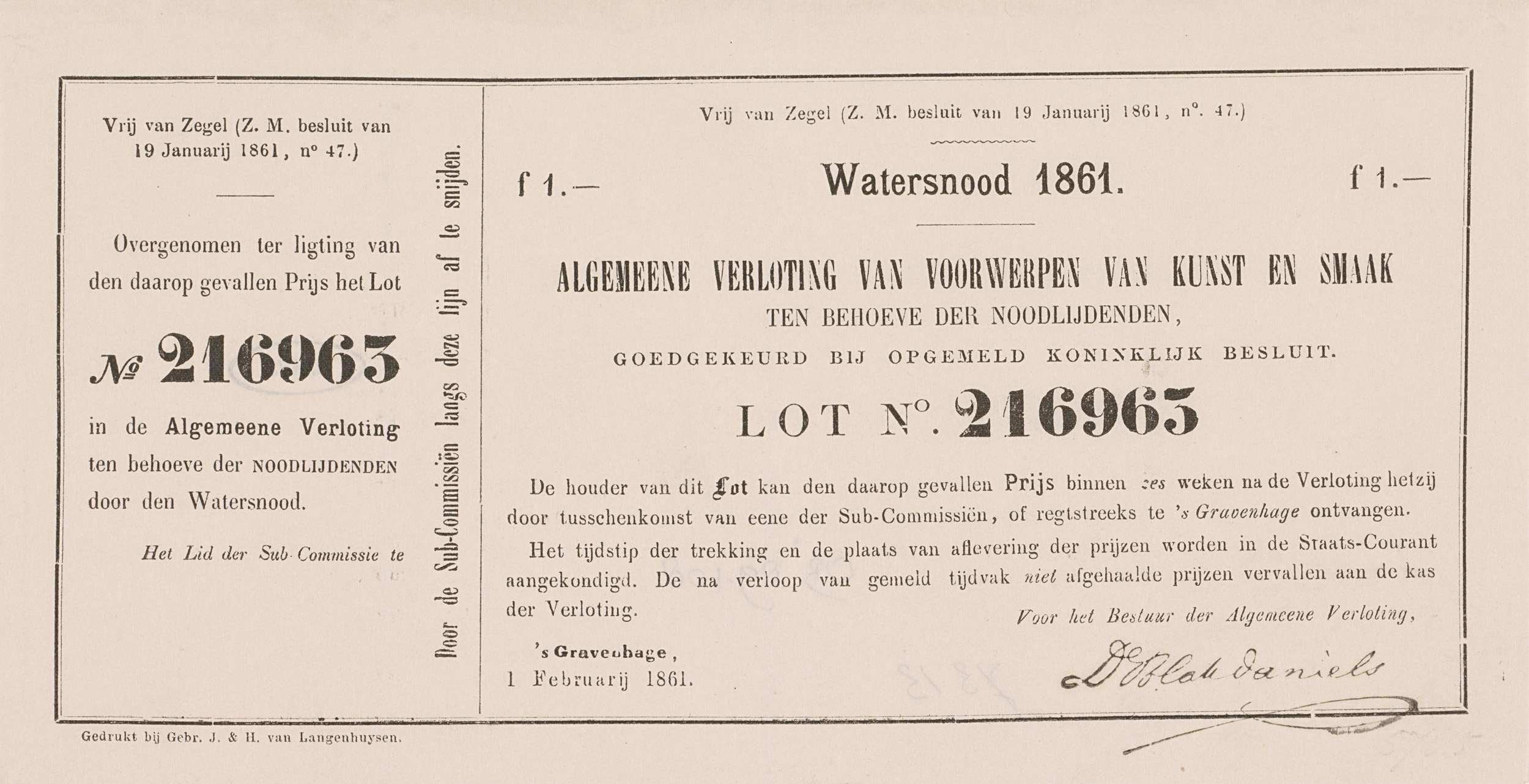 Lot voor de loterij ten behoeve van de slachtoffers ...