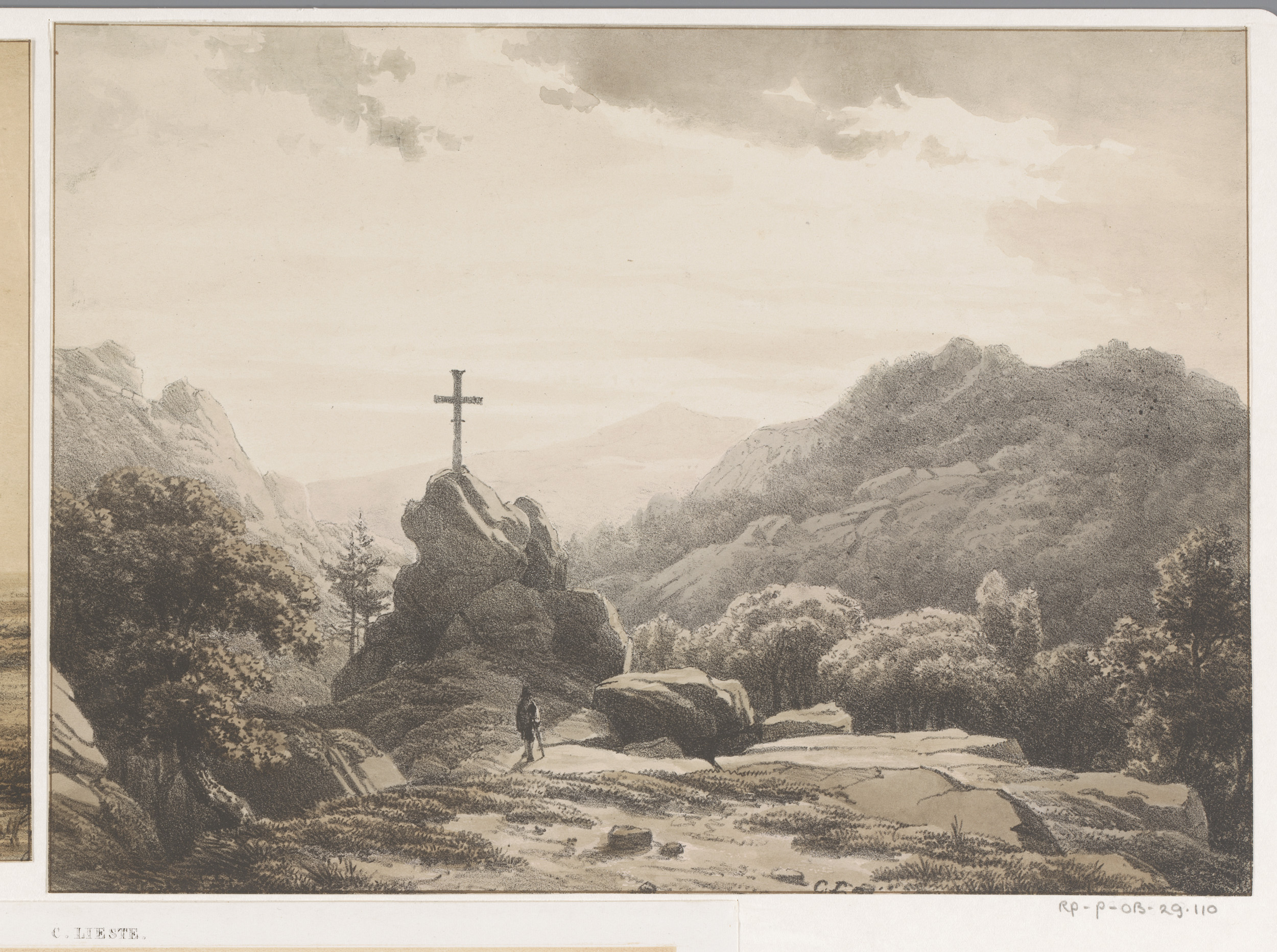 Berglandschap met kruis op een rots