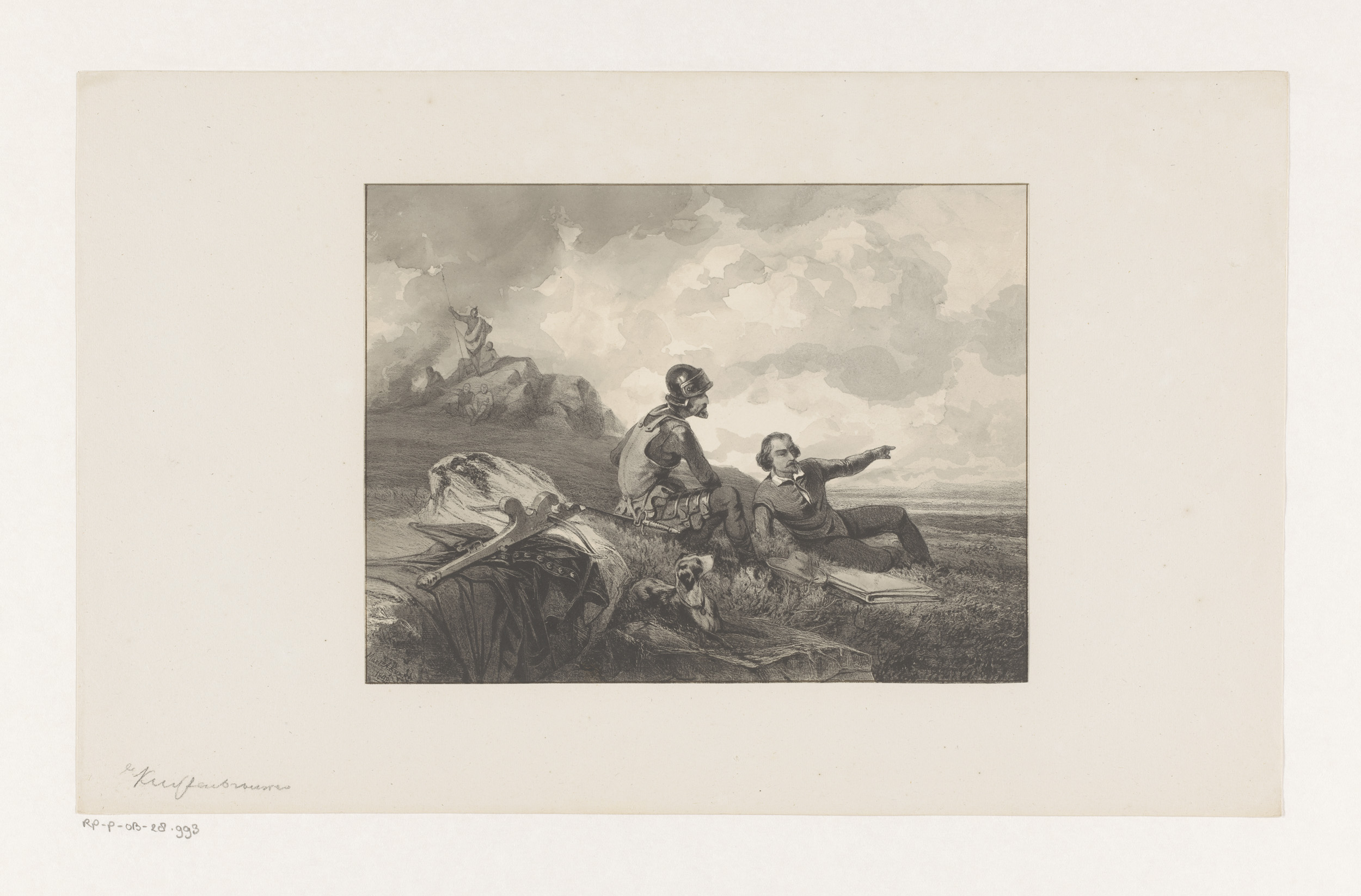 Soldaat en burgerman in een landschap