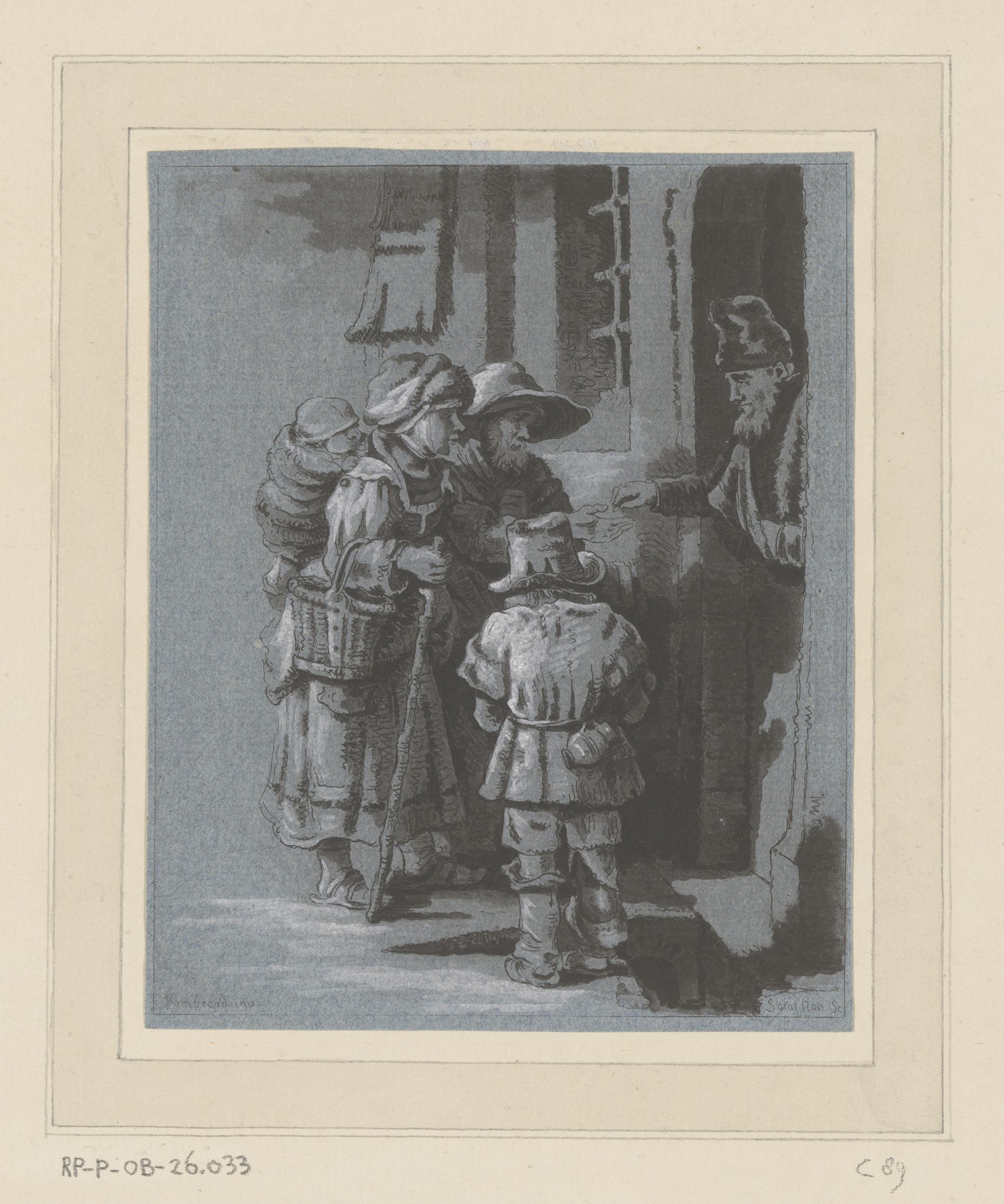 Een blinde draailierspeler met familie ontvangt een ...