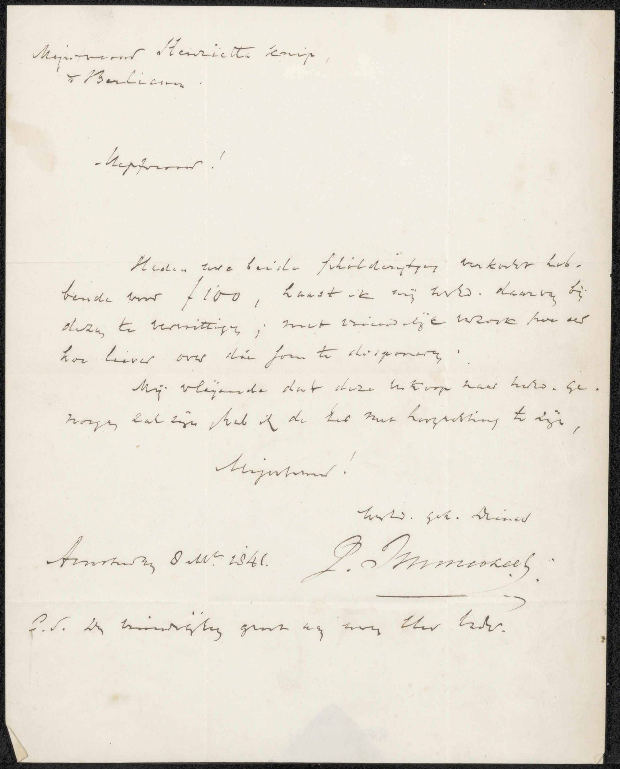 Brief aan Johannes Tiberius Bodel Nijenhuis