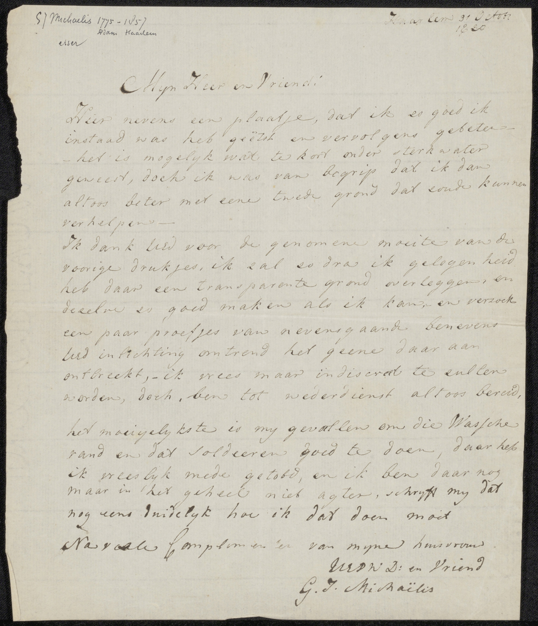 Brief aan de heer J.J.W.B. van Dijck