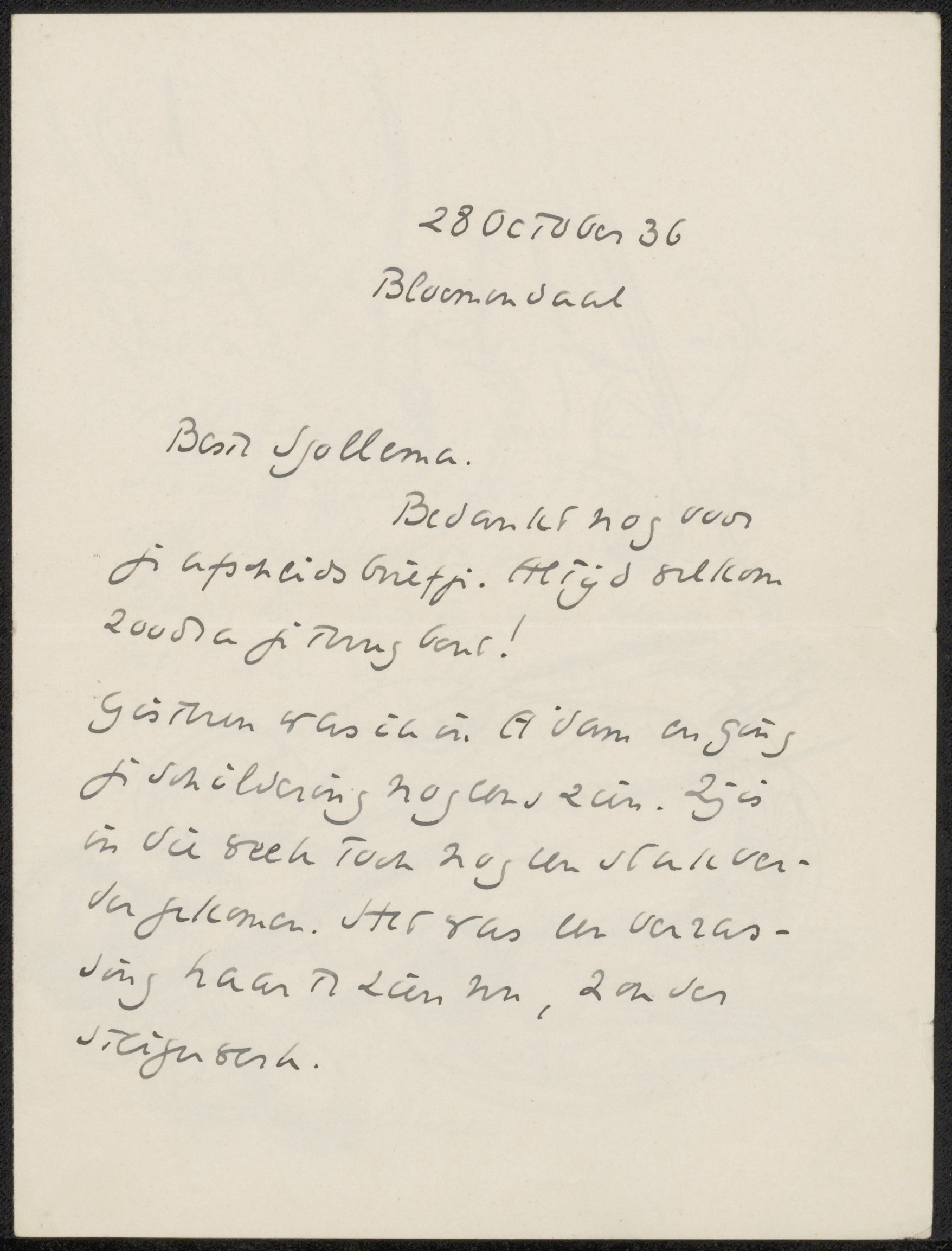 Brief aan Joop Sjollema