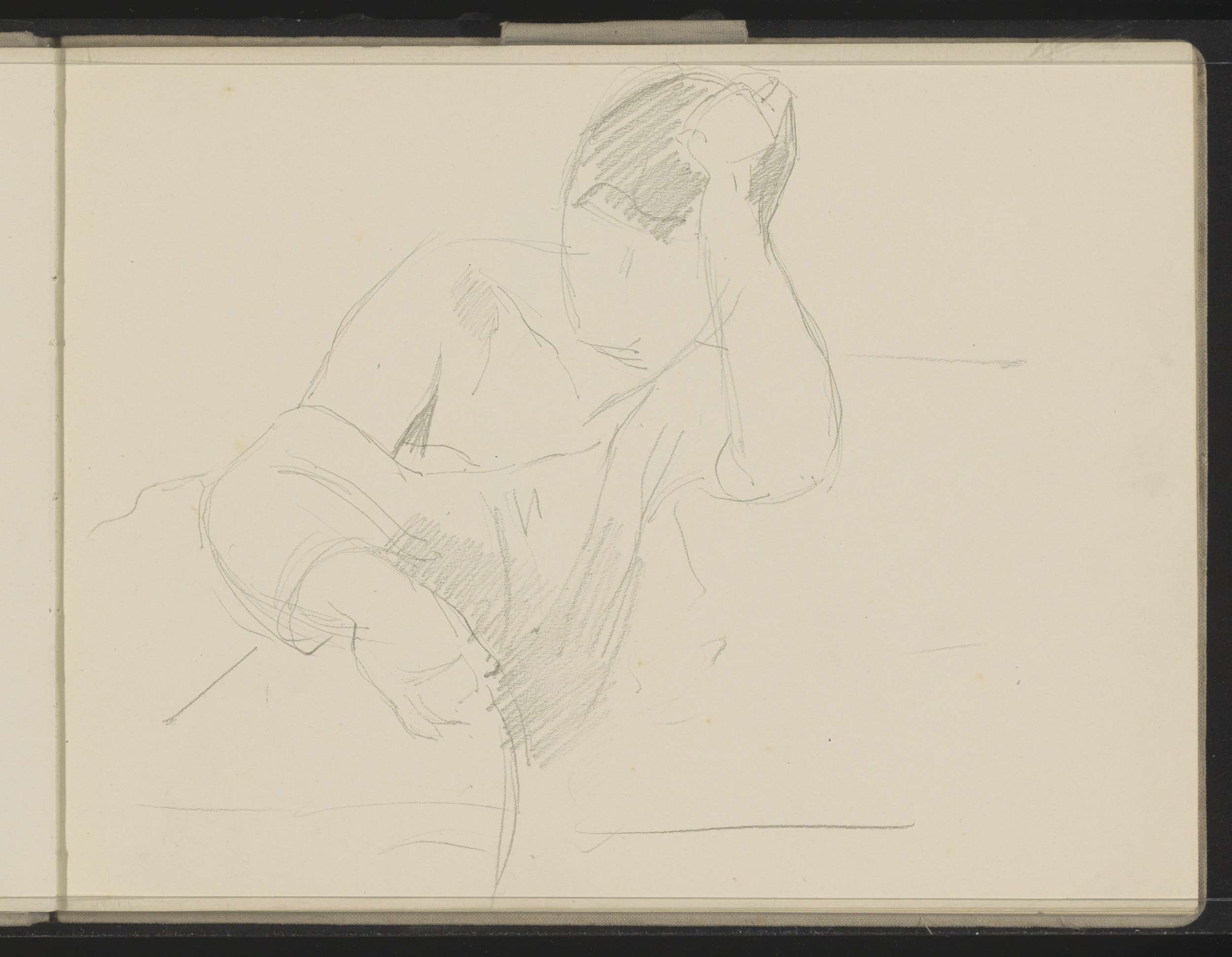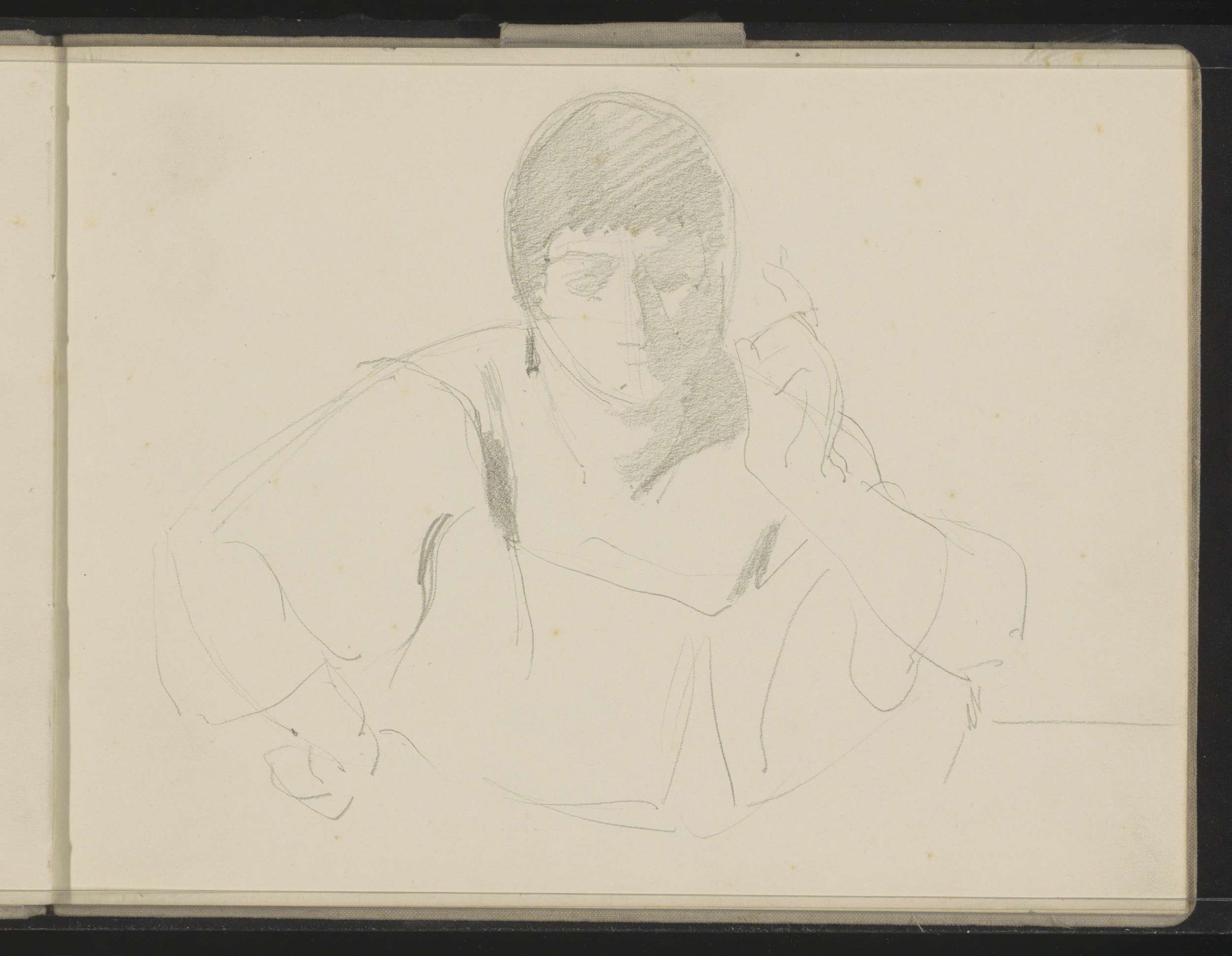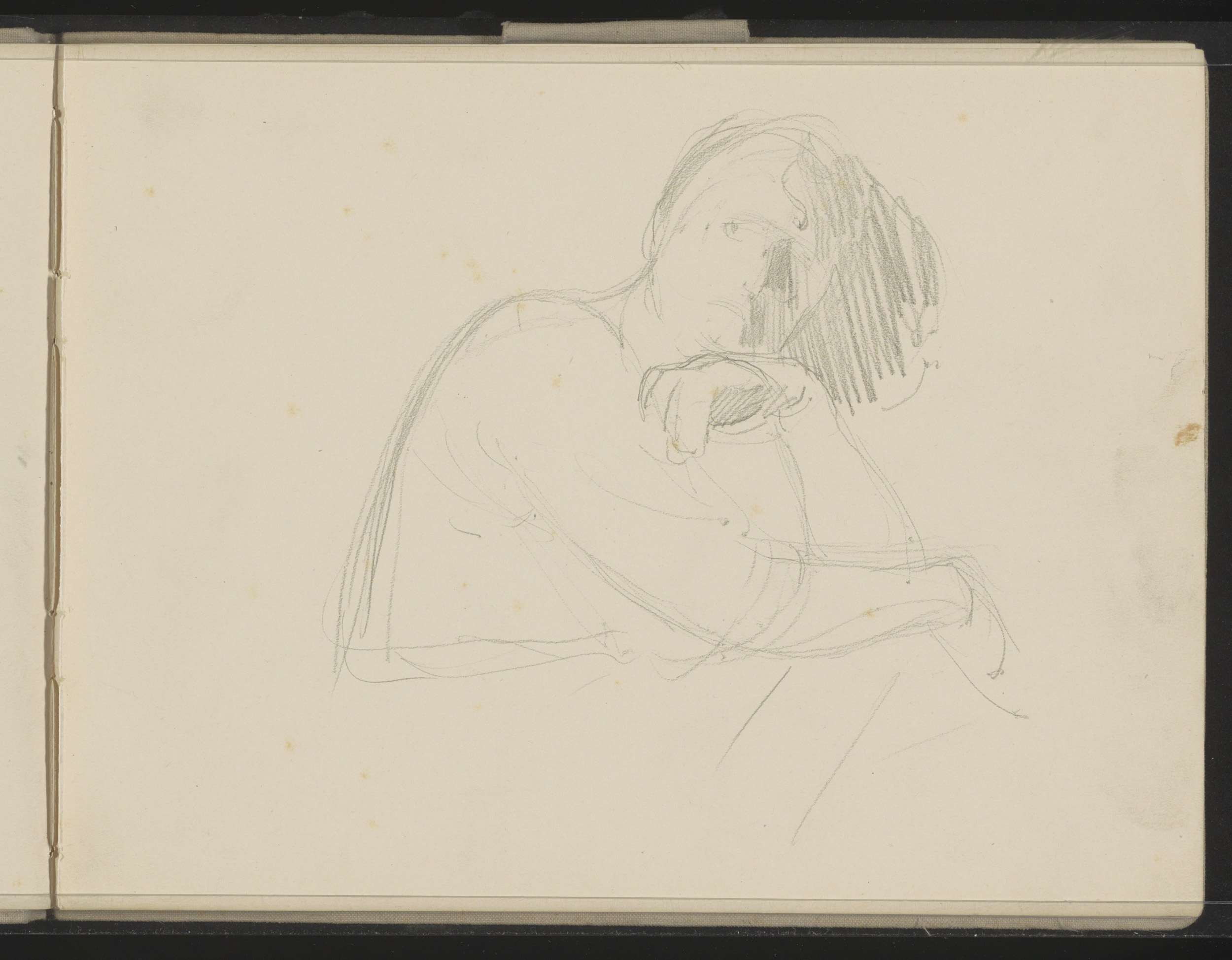 Zittende vrouw met ontblote schouder