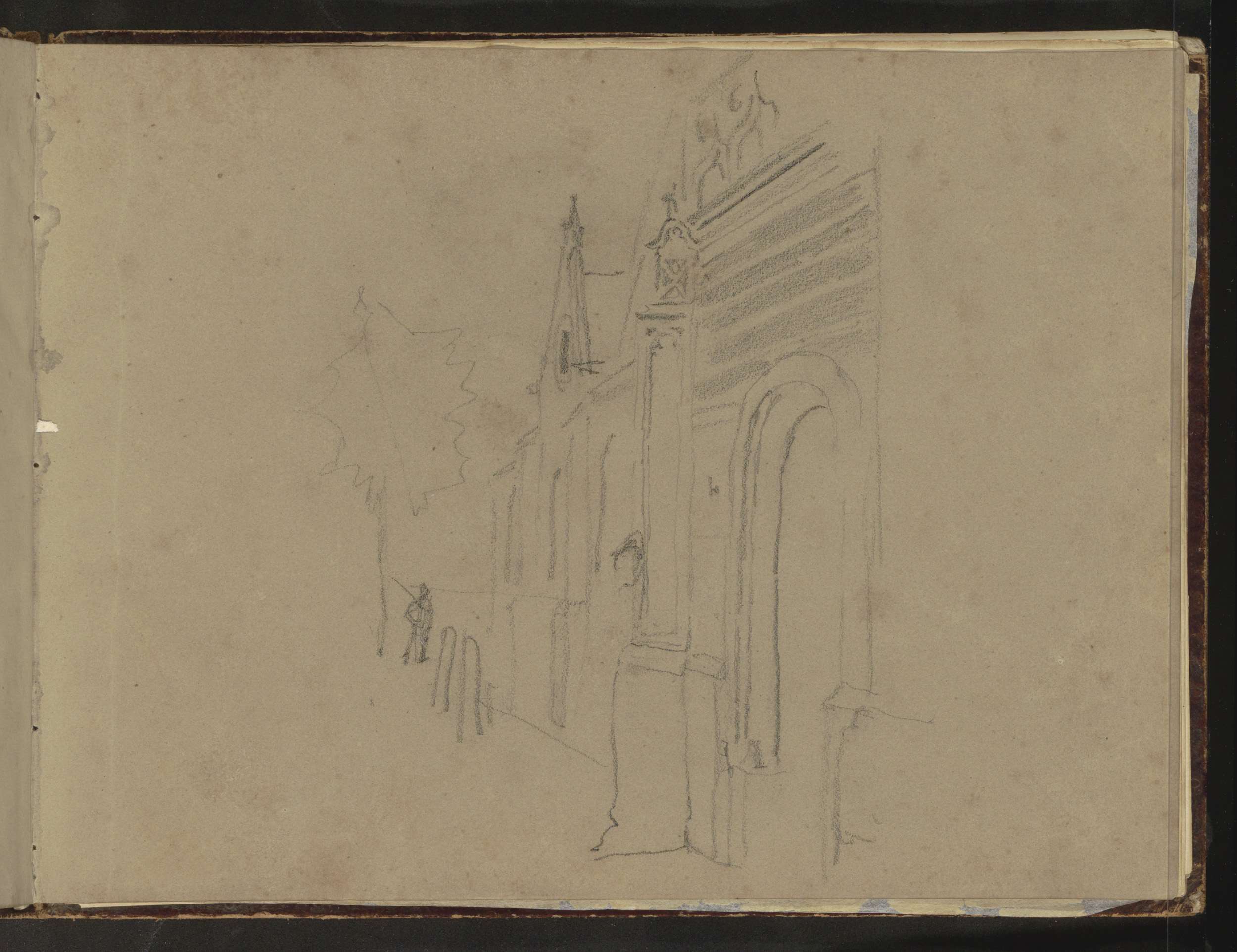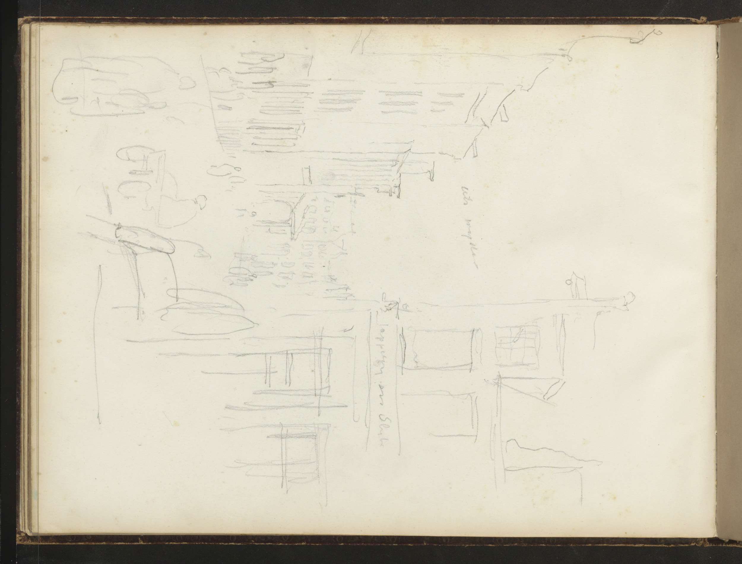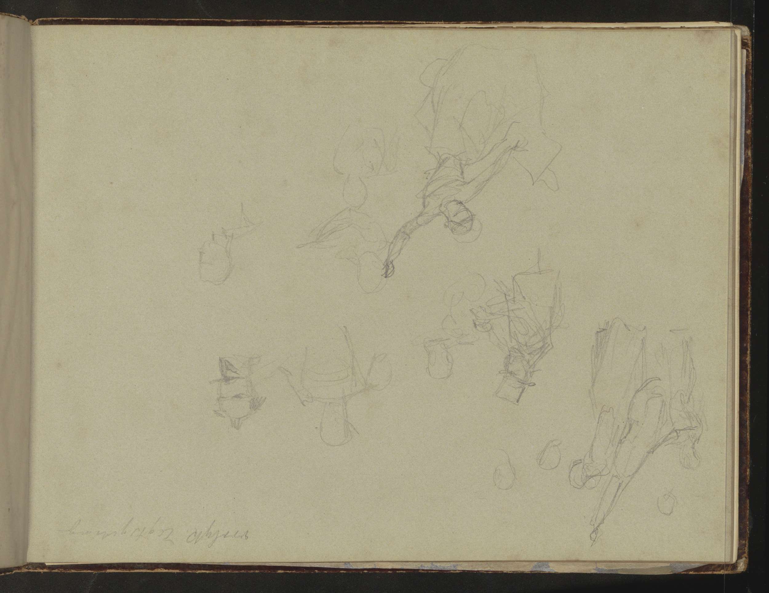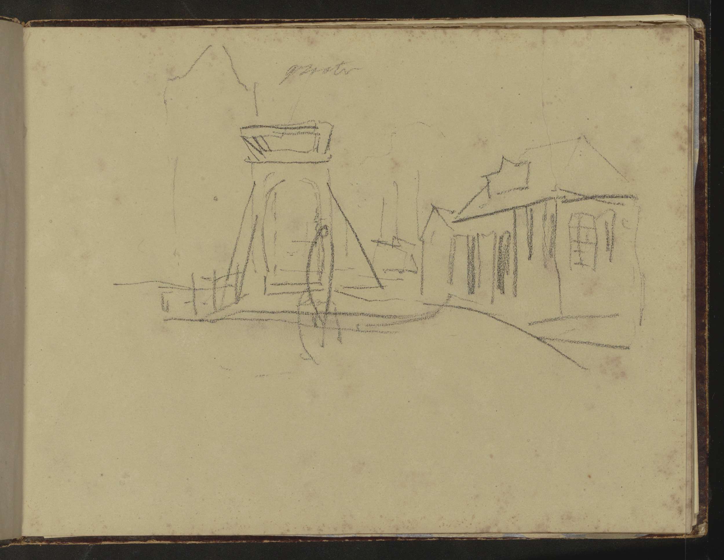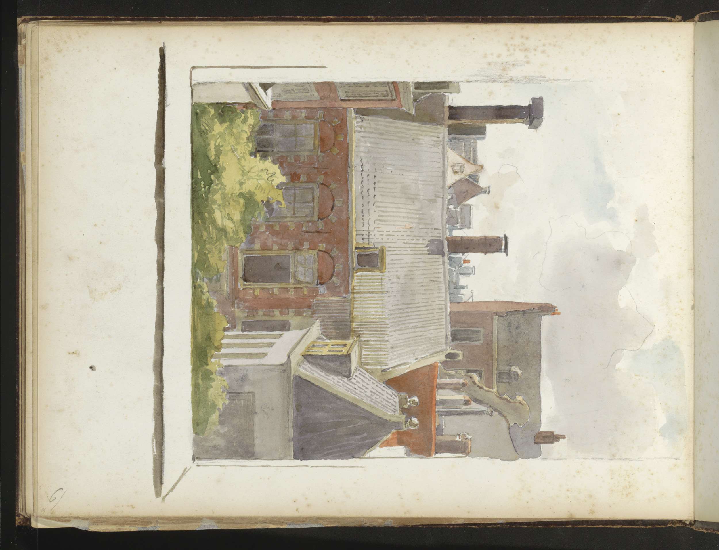 Studieblad, onder andere met een tekentafel, stoel e...