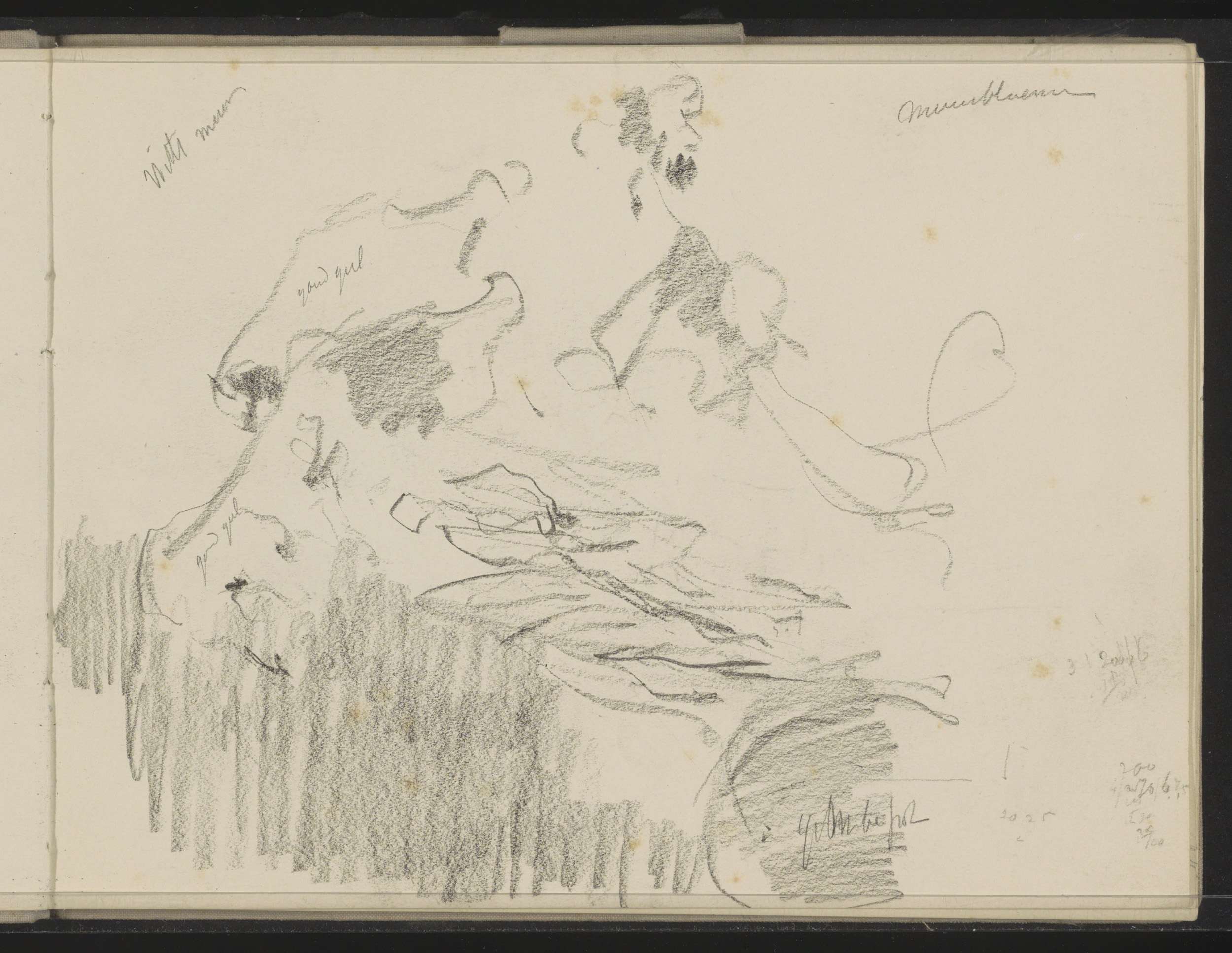 Studieblad, onder andere met een paard en accordions...