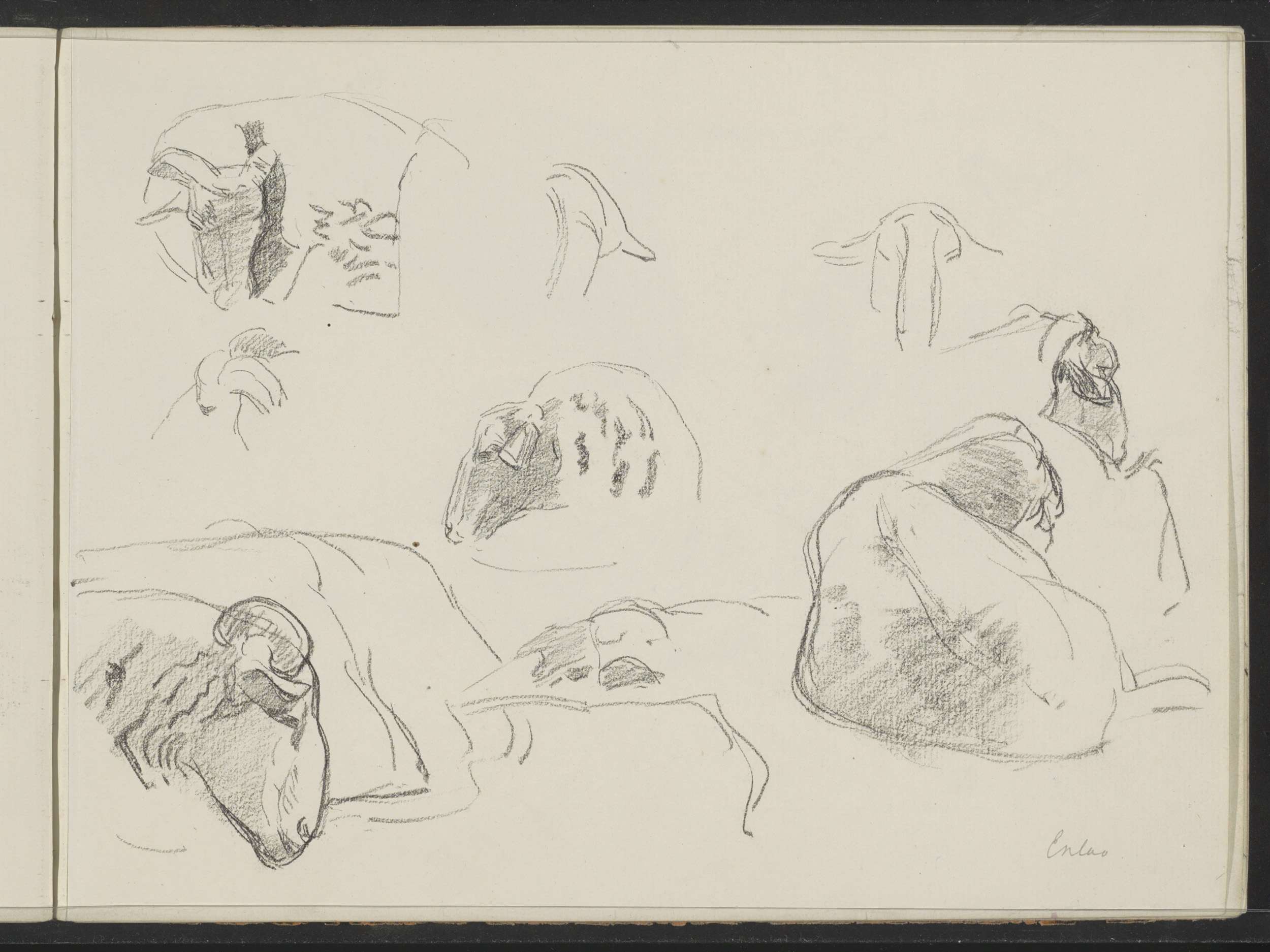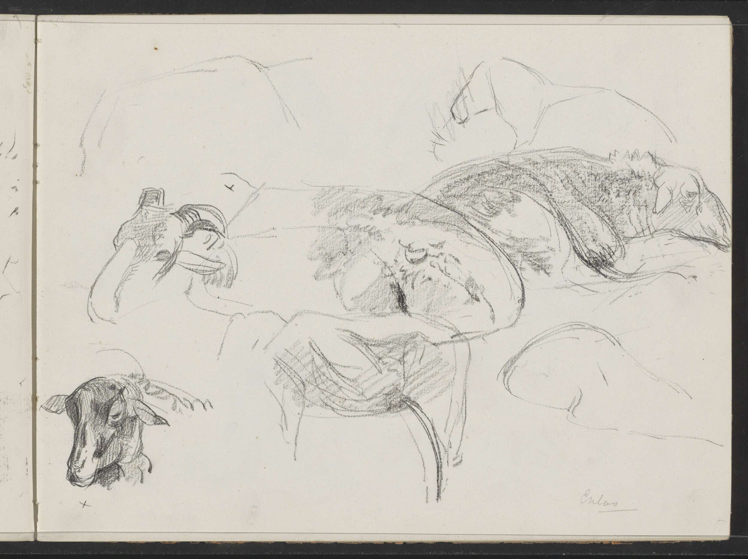 Studieblad met liggende schapen te Exloo