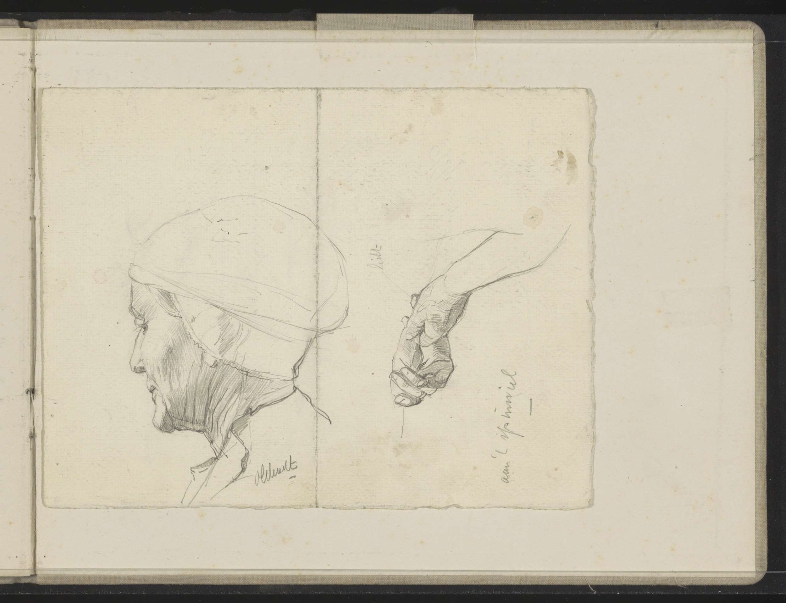 Oude vrouw met muts en een paar handen