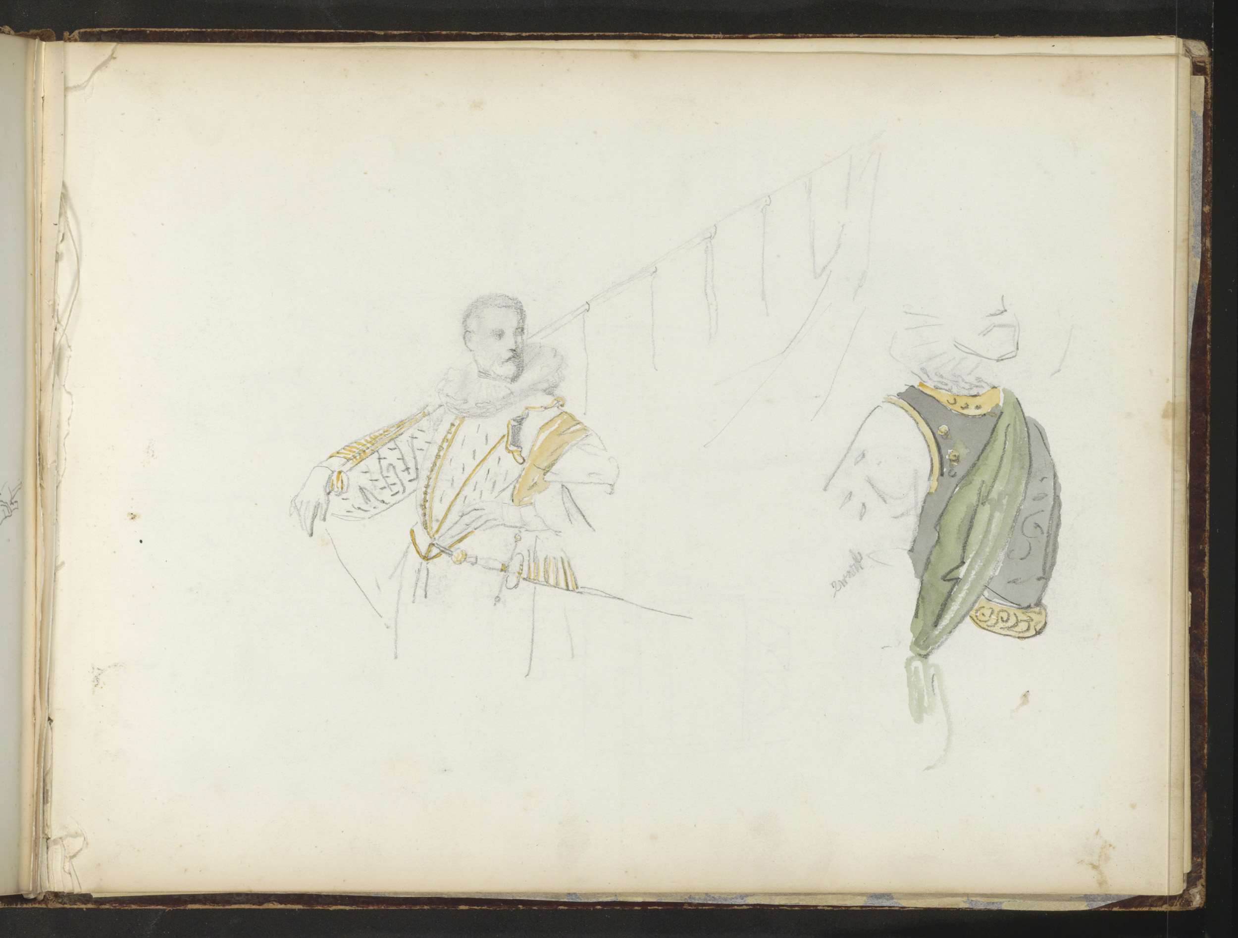 Vaandeldrager en een man in een harnas met sjerp