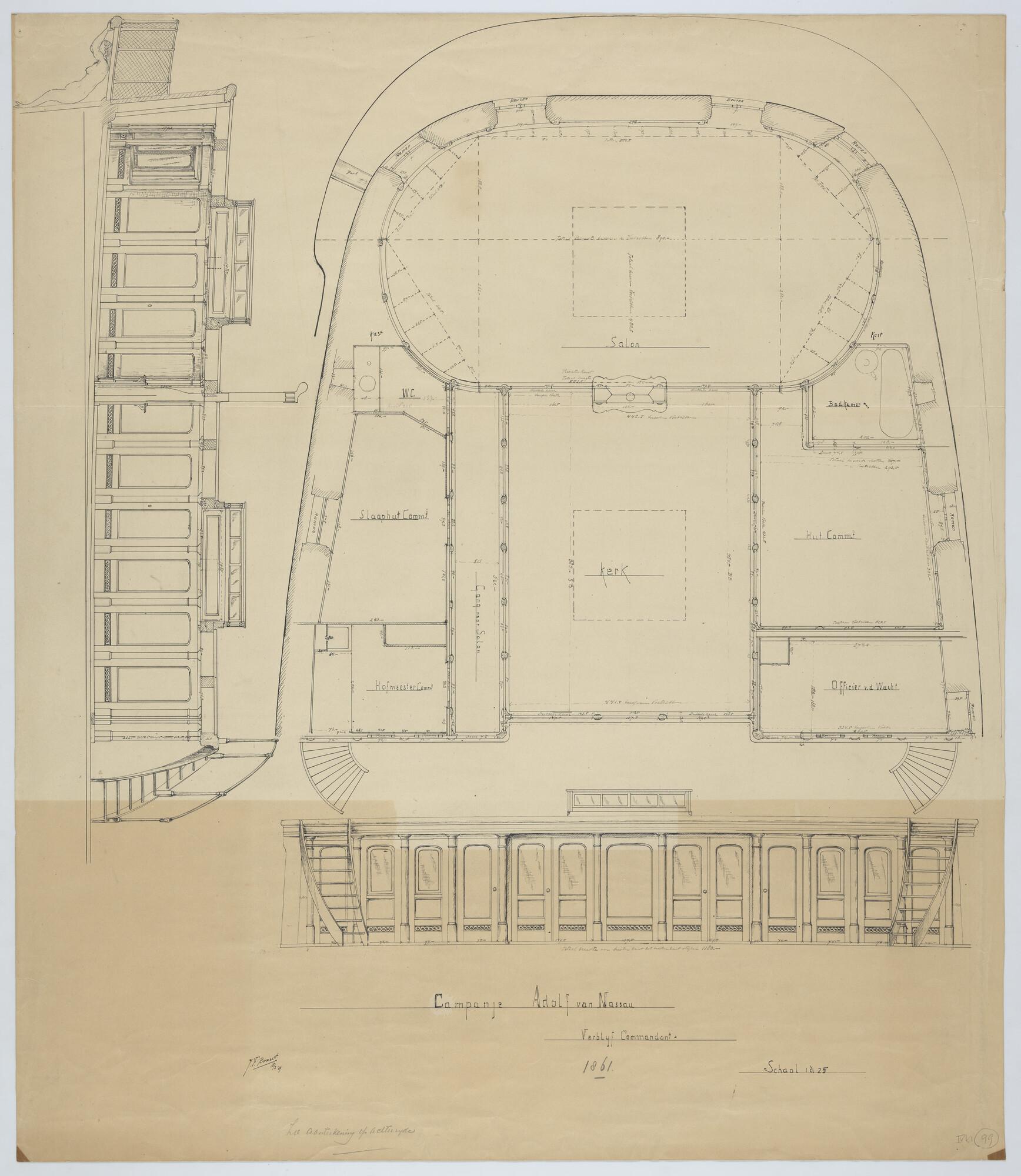 Tekening van de kajuit van de "Adolf van Nassau"
