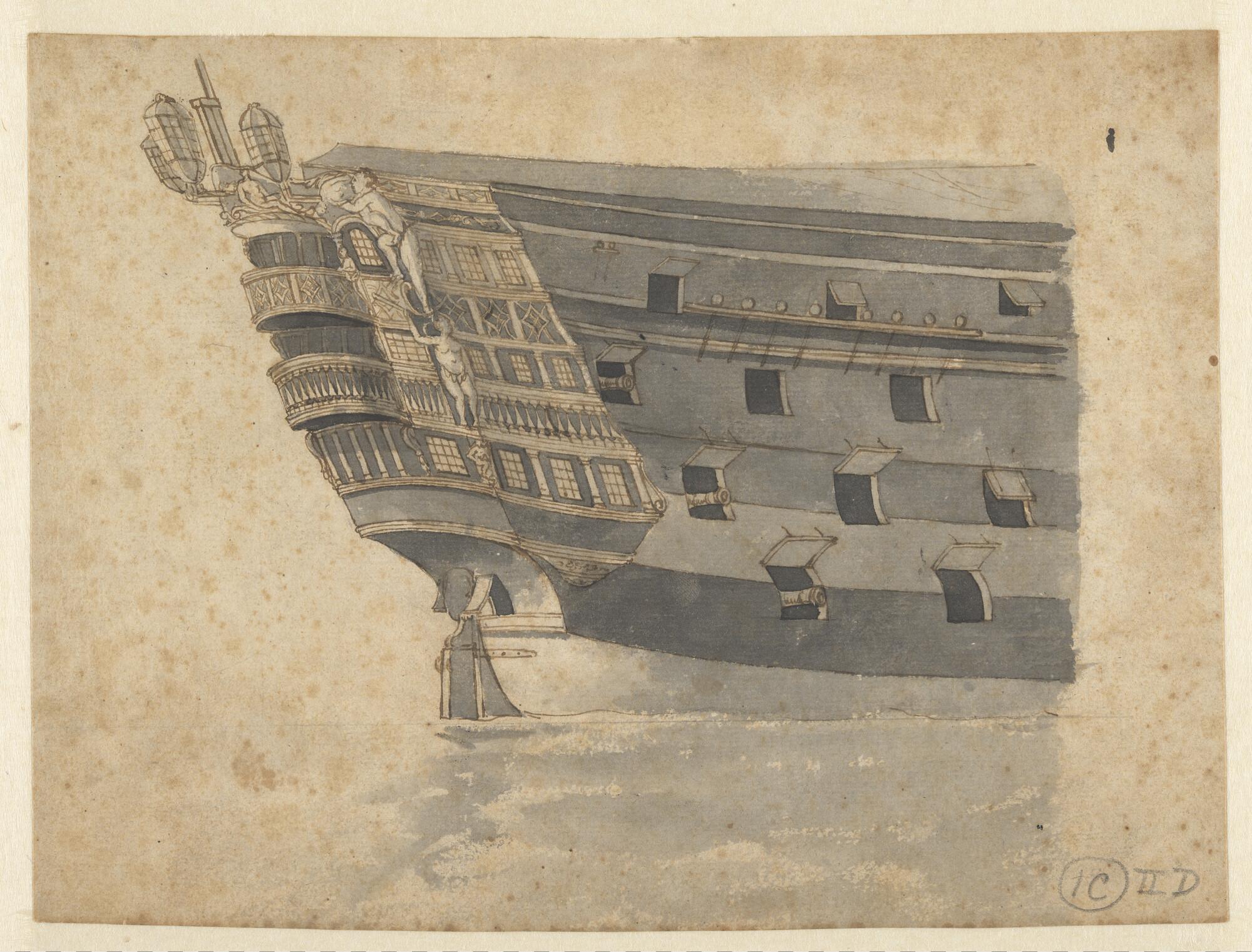Een achterschip van een driedekker met rijk bewerkte...