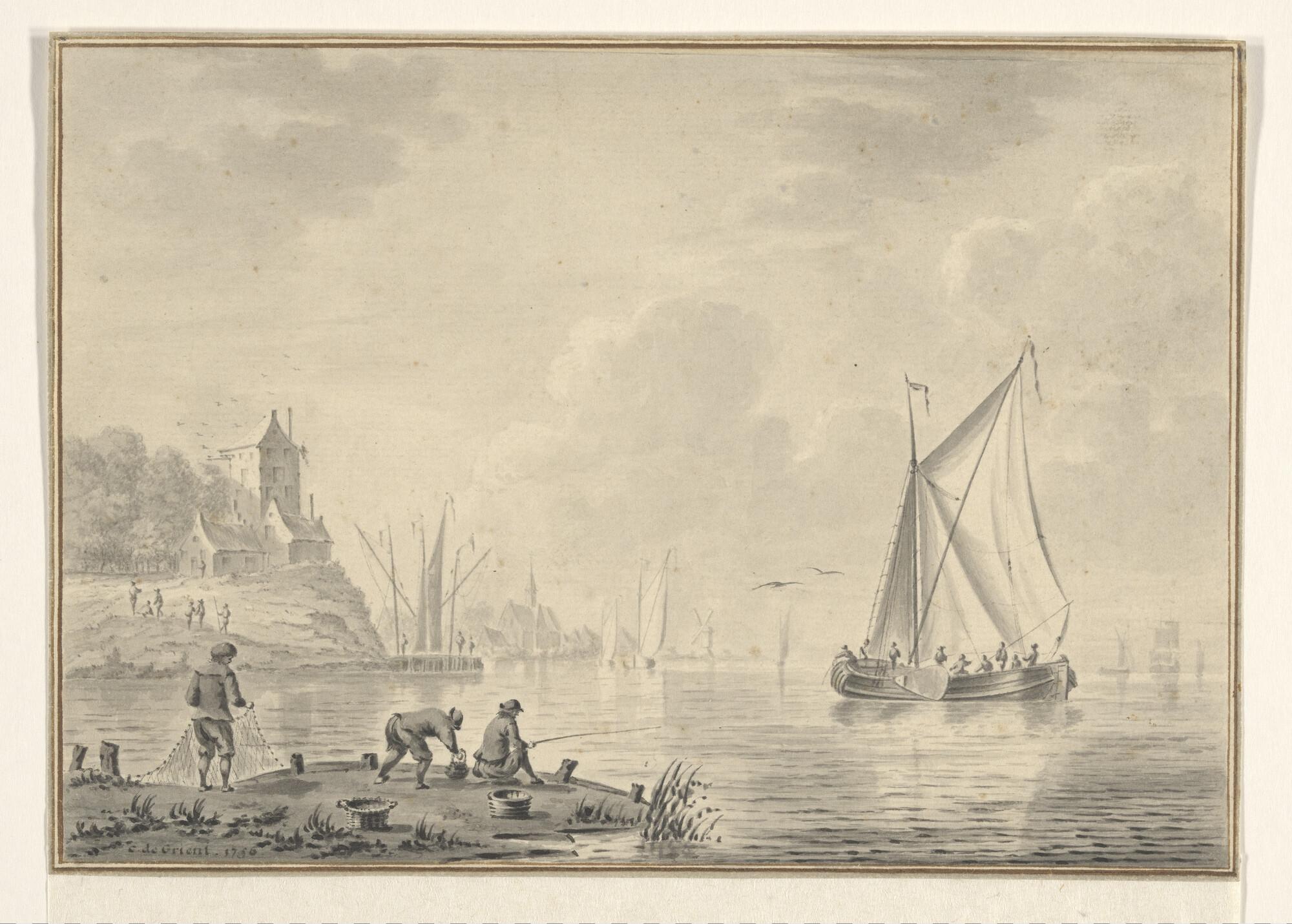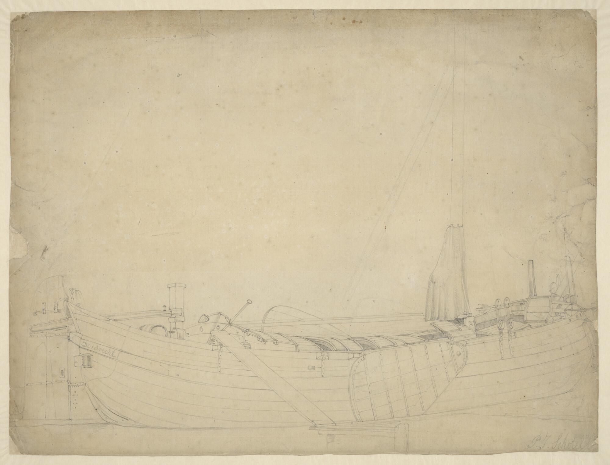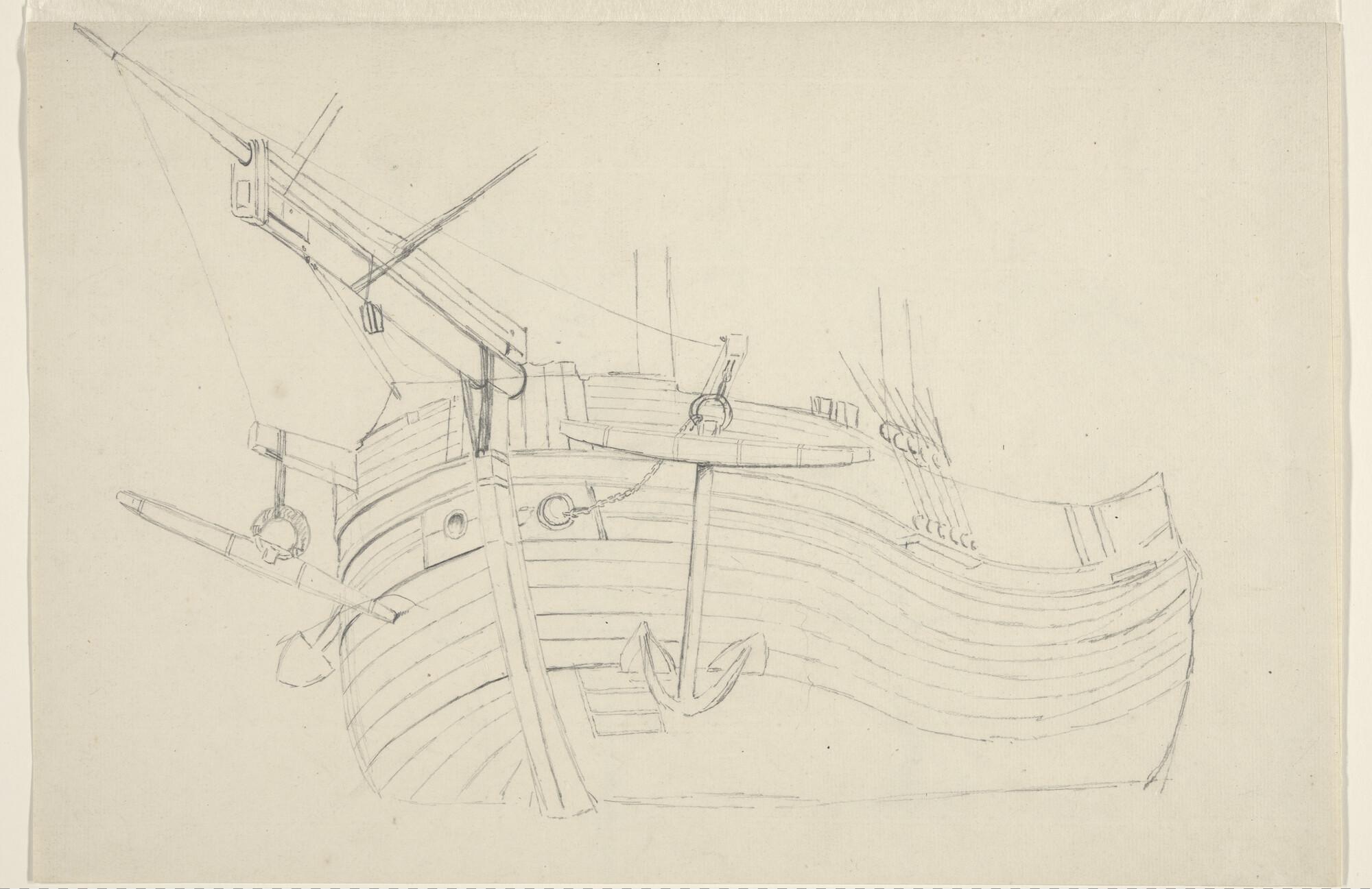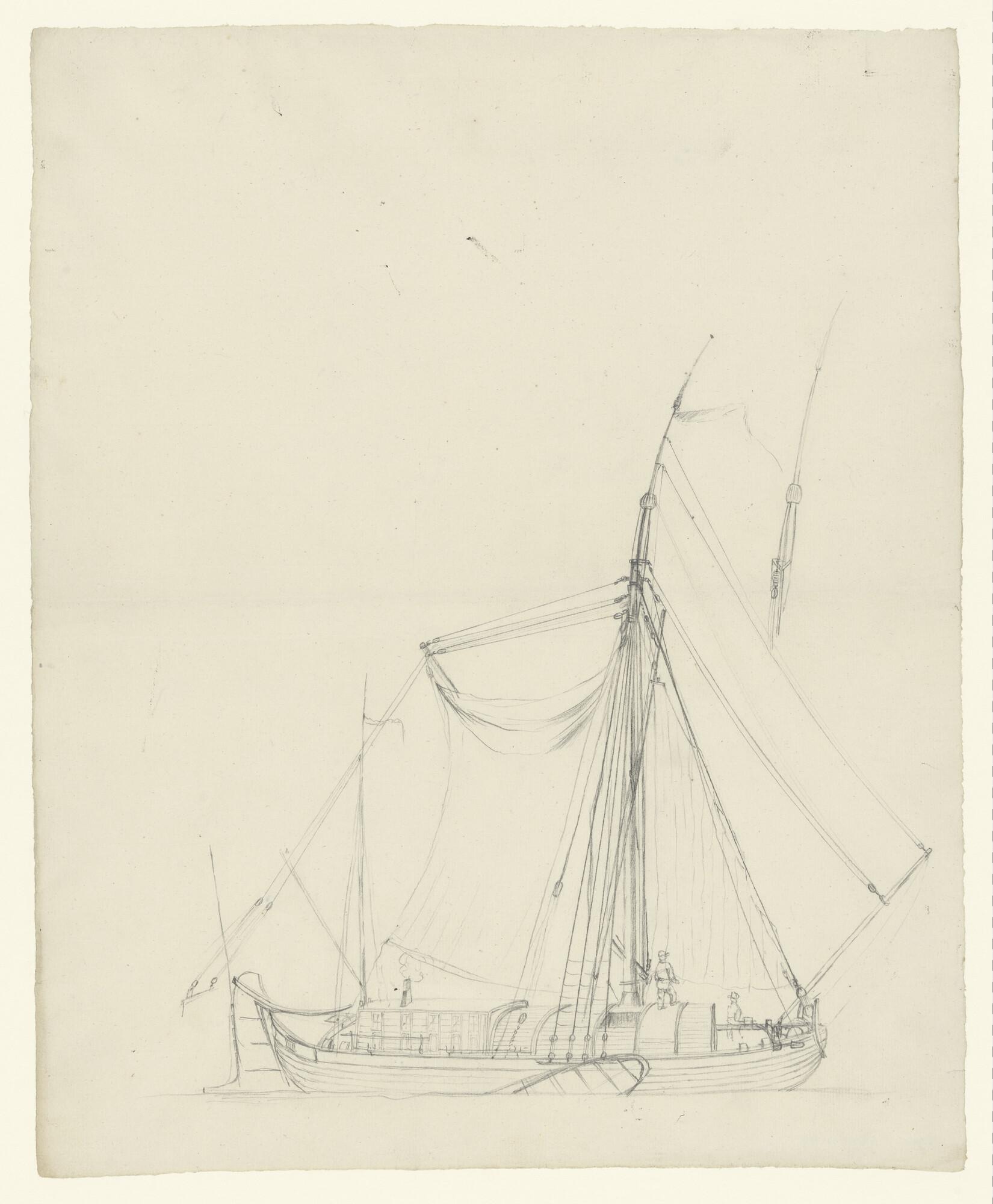 Schets van een vrachtscheepje en verso: een tweemast...