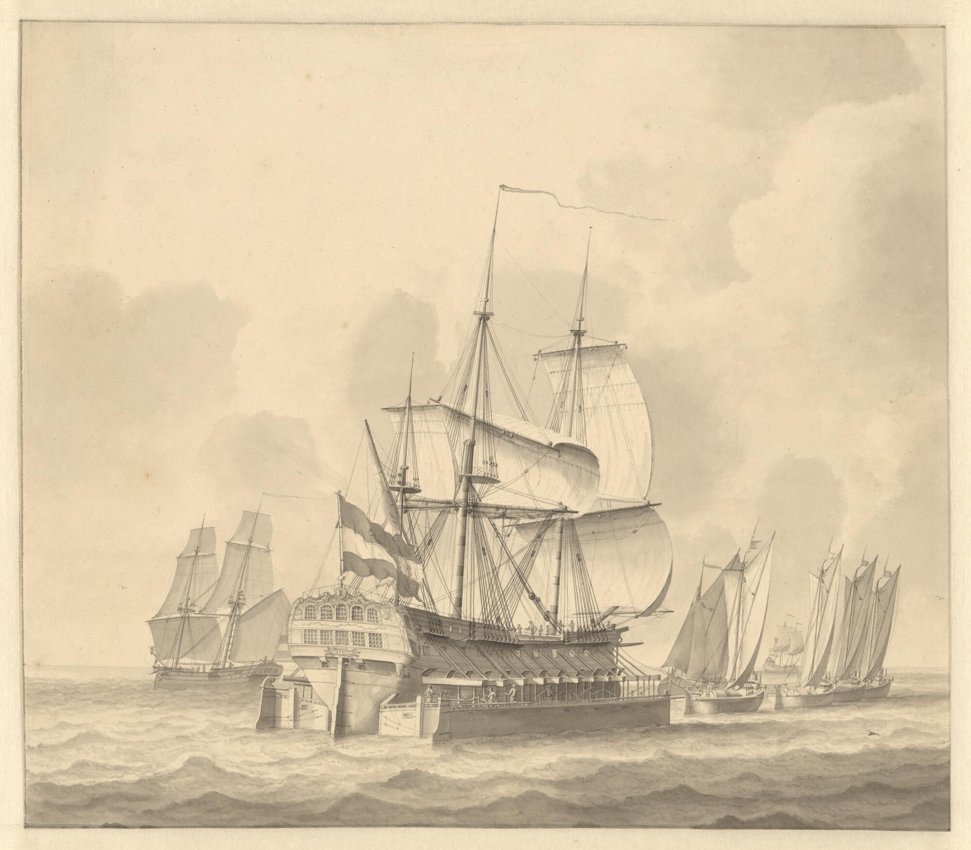 Het oorlogsschip 'Vrede' in scheepskamelen