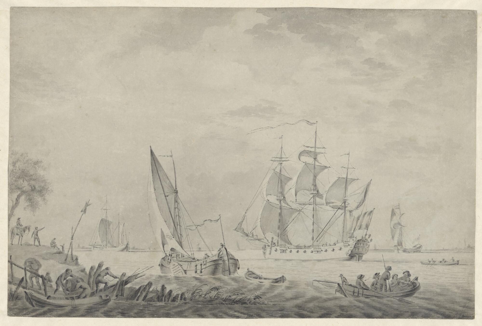 Scheepvaart in een riviermonding