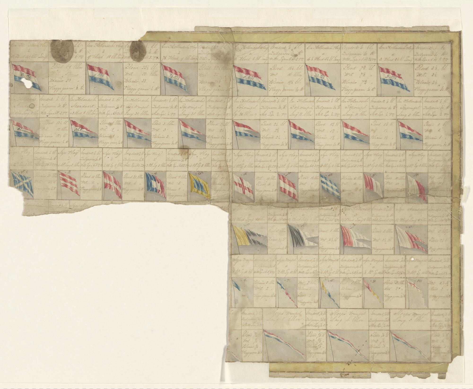 Fragment van een vlaggenkaart met Hollandse vlaggen