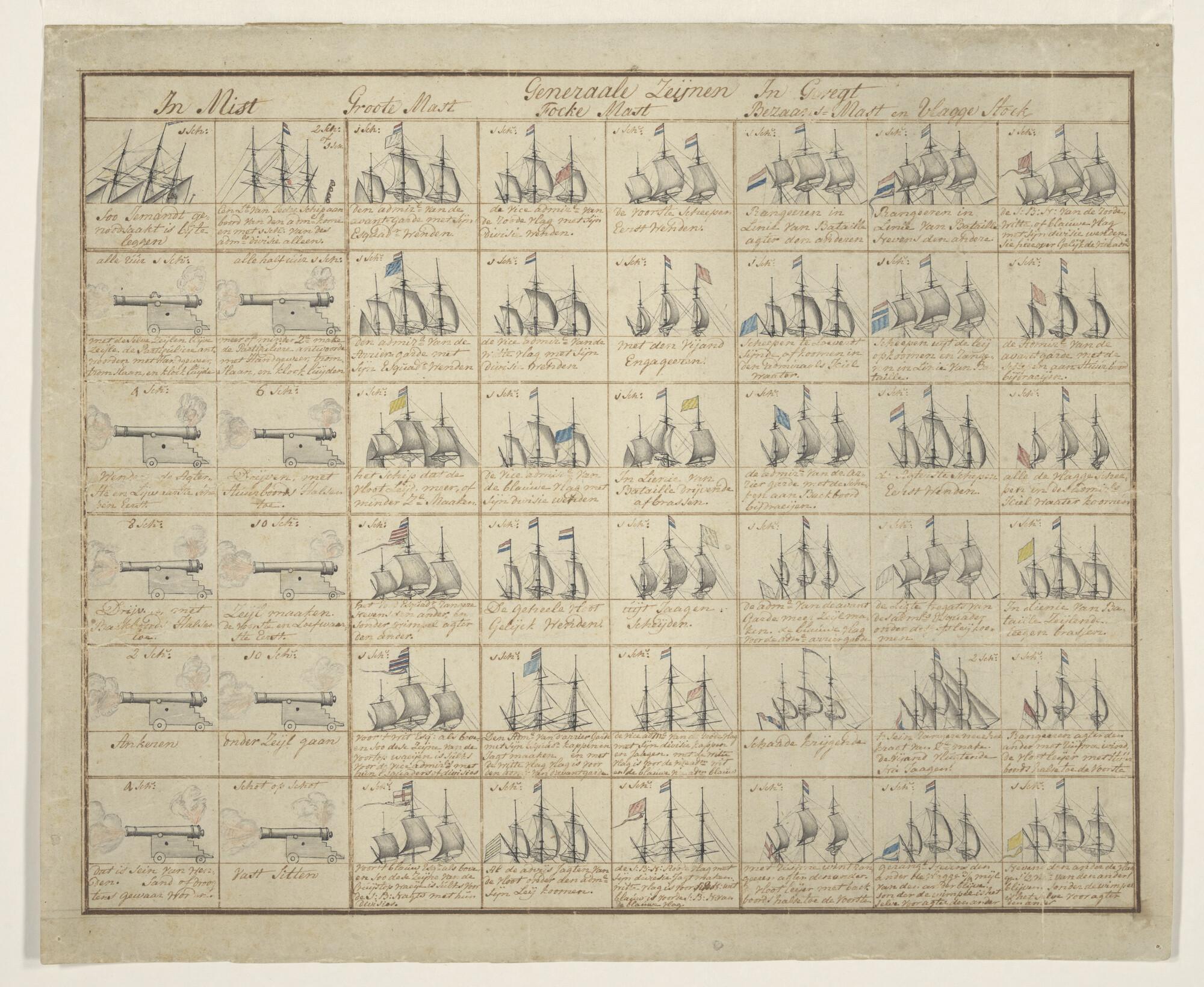'Generaale Zeijnen.' Seintabel met vlaggeseinen en g...