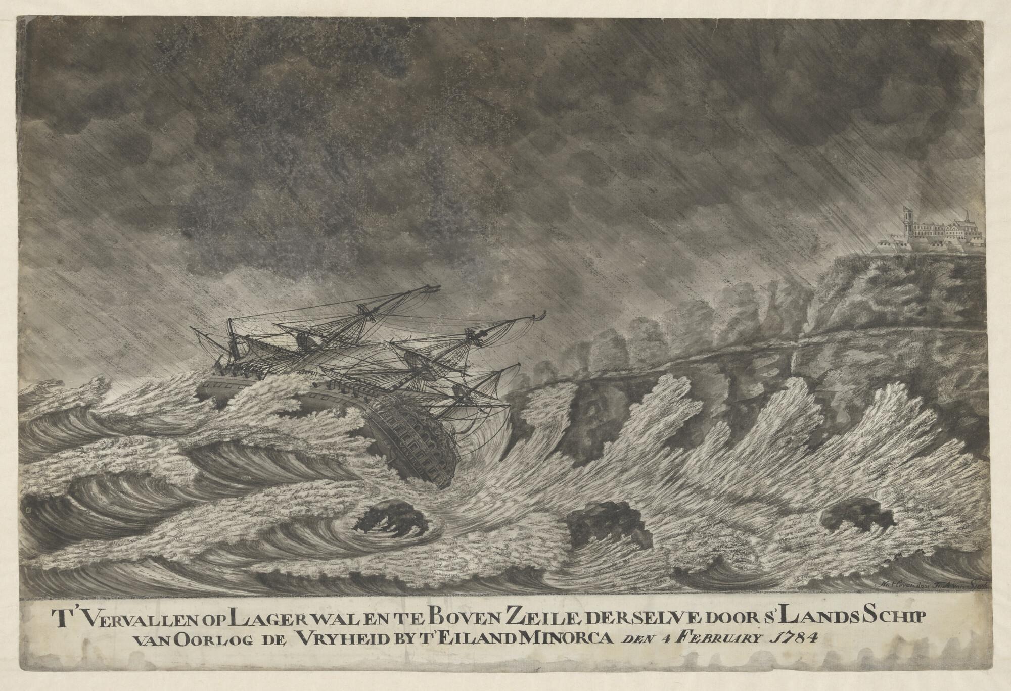 Schipbreuk van 's Lands oorlogsschip de 'Vrijheid' o...