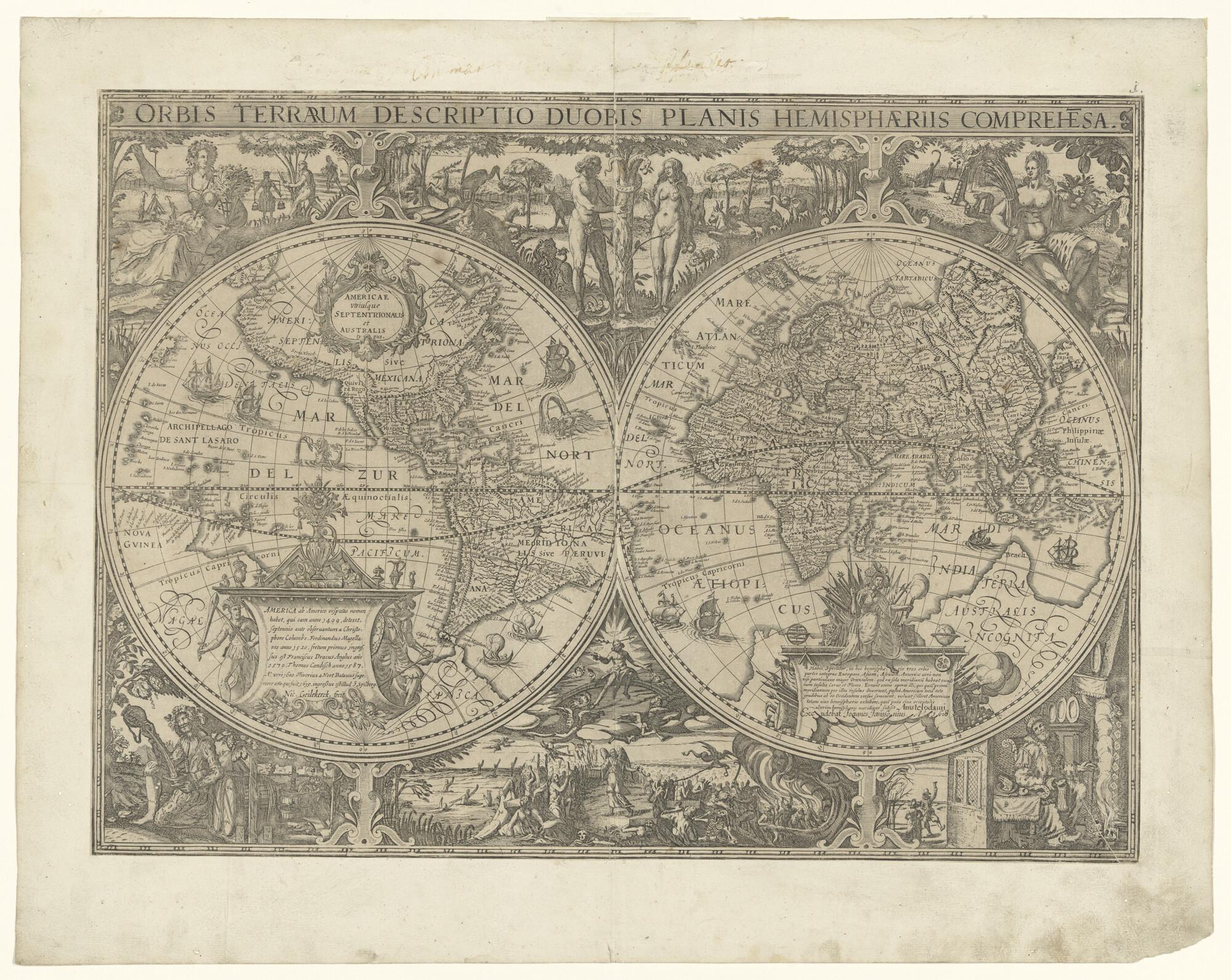 Wereldkaart in twee halfronden van Nicolaas van Geel...