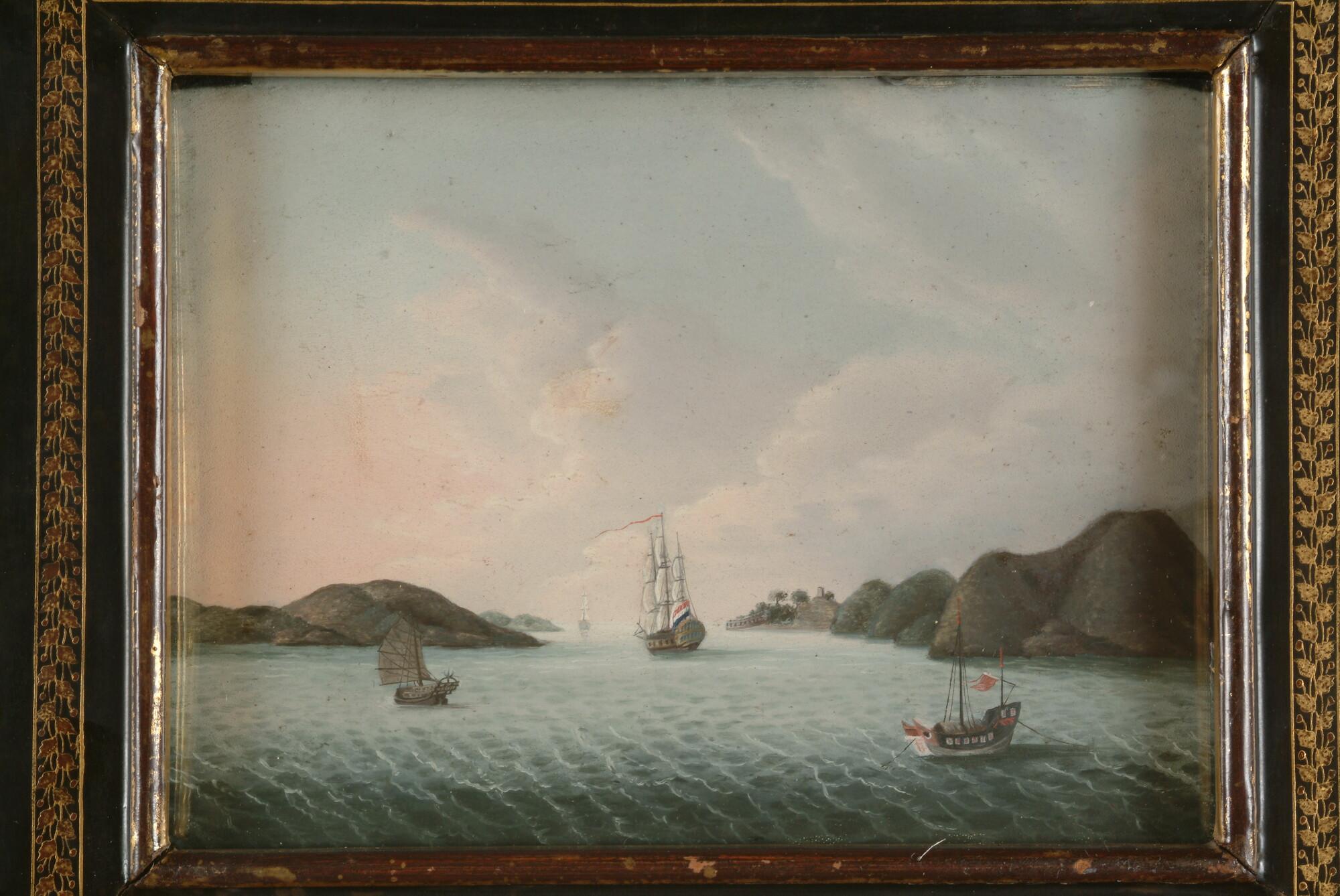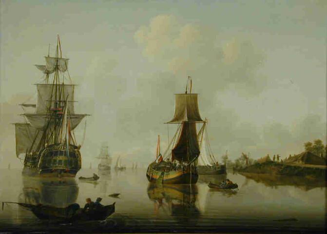 Het retourschip de 'Parel' en de Westindievaarder de...