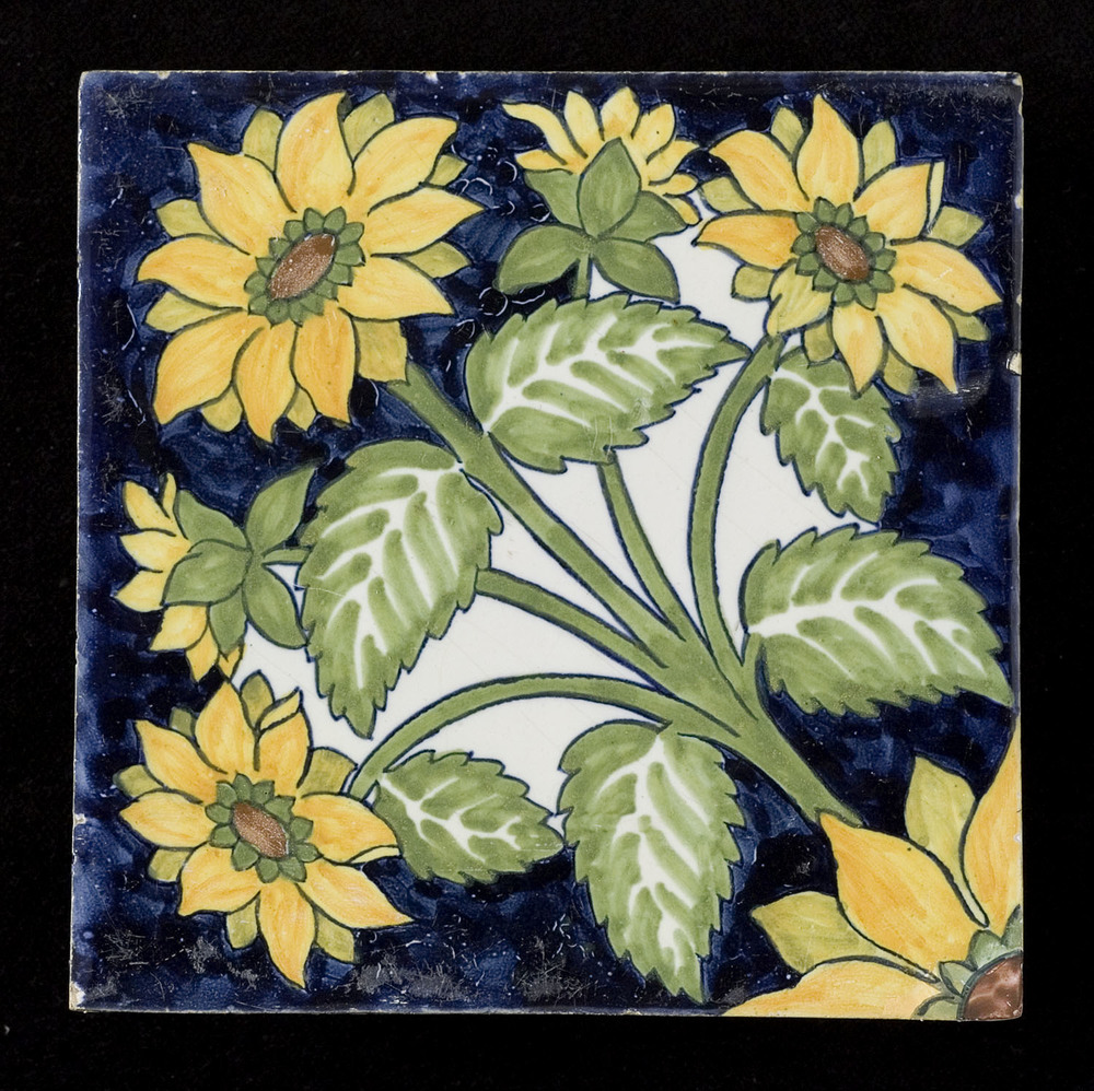 Tegel in tinglazuur, voorstellende veelkleurige drie...