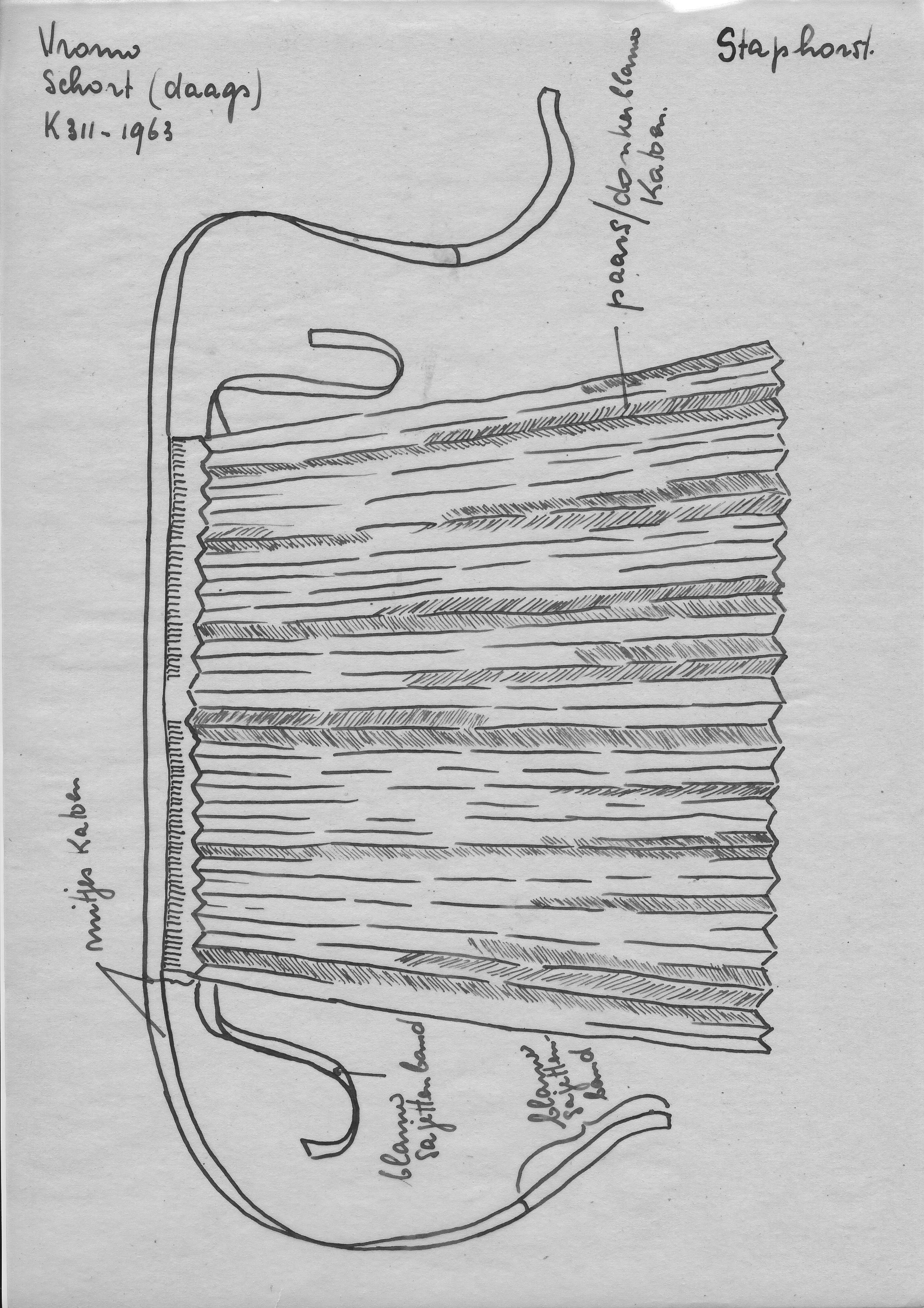 Tekening van een daags schort, Staphorst (opmetingst...