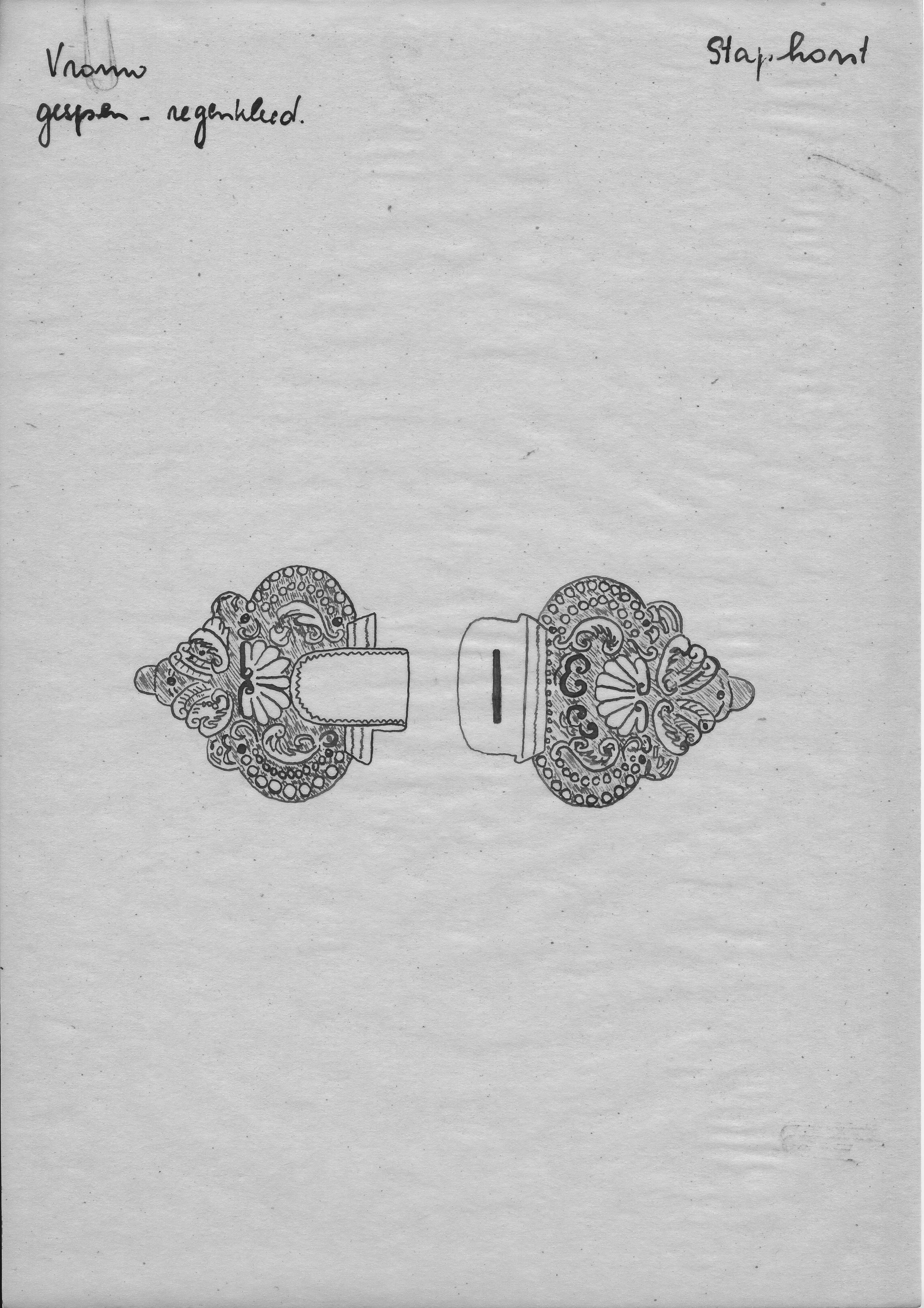 Tekening van gespen voor een regenkleed, Staphorst (...