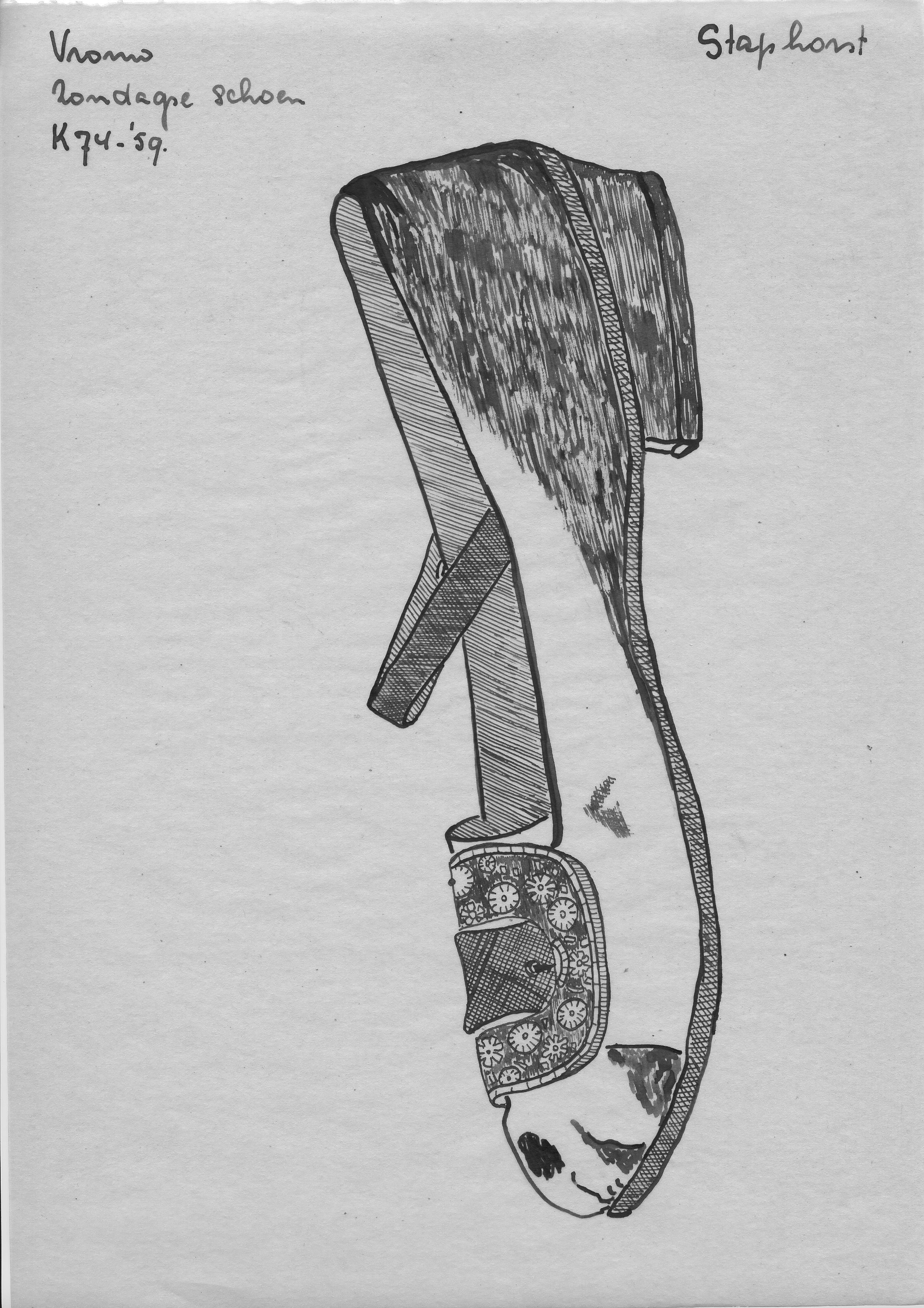Tekening van een zondagse schoen, Staphorst (opmetin...