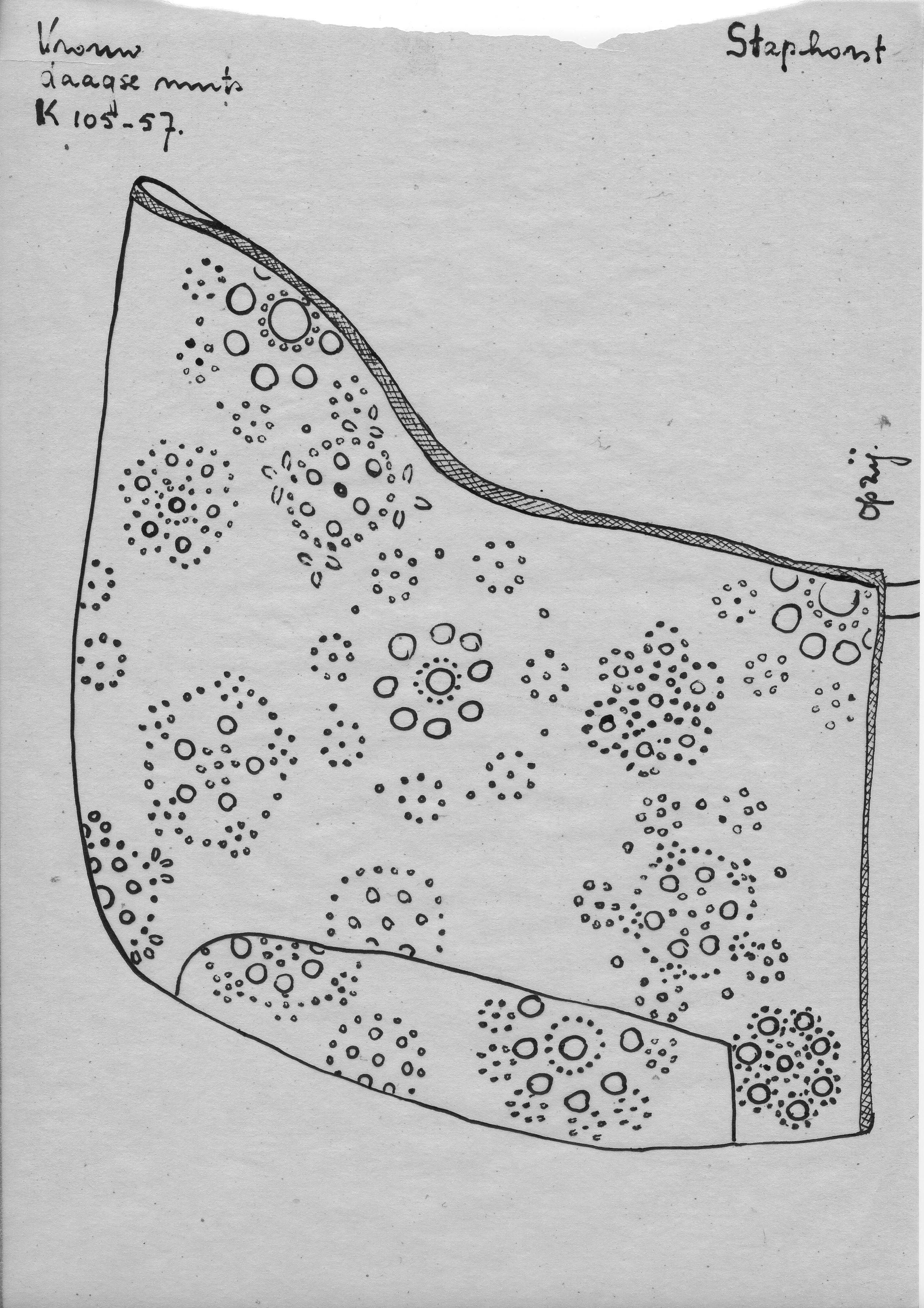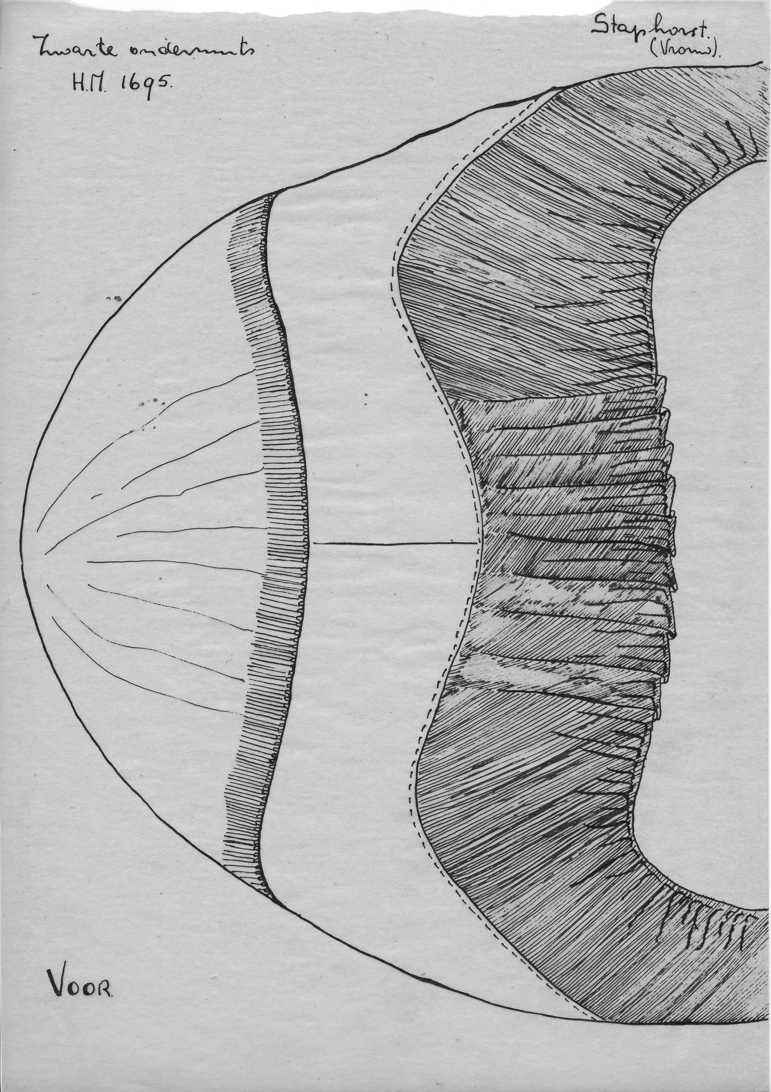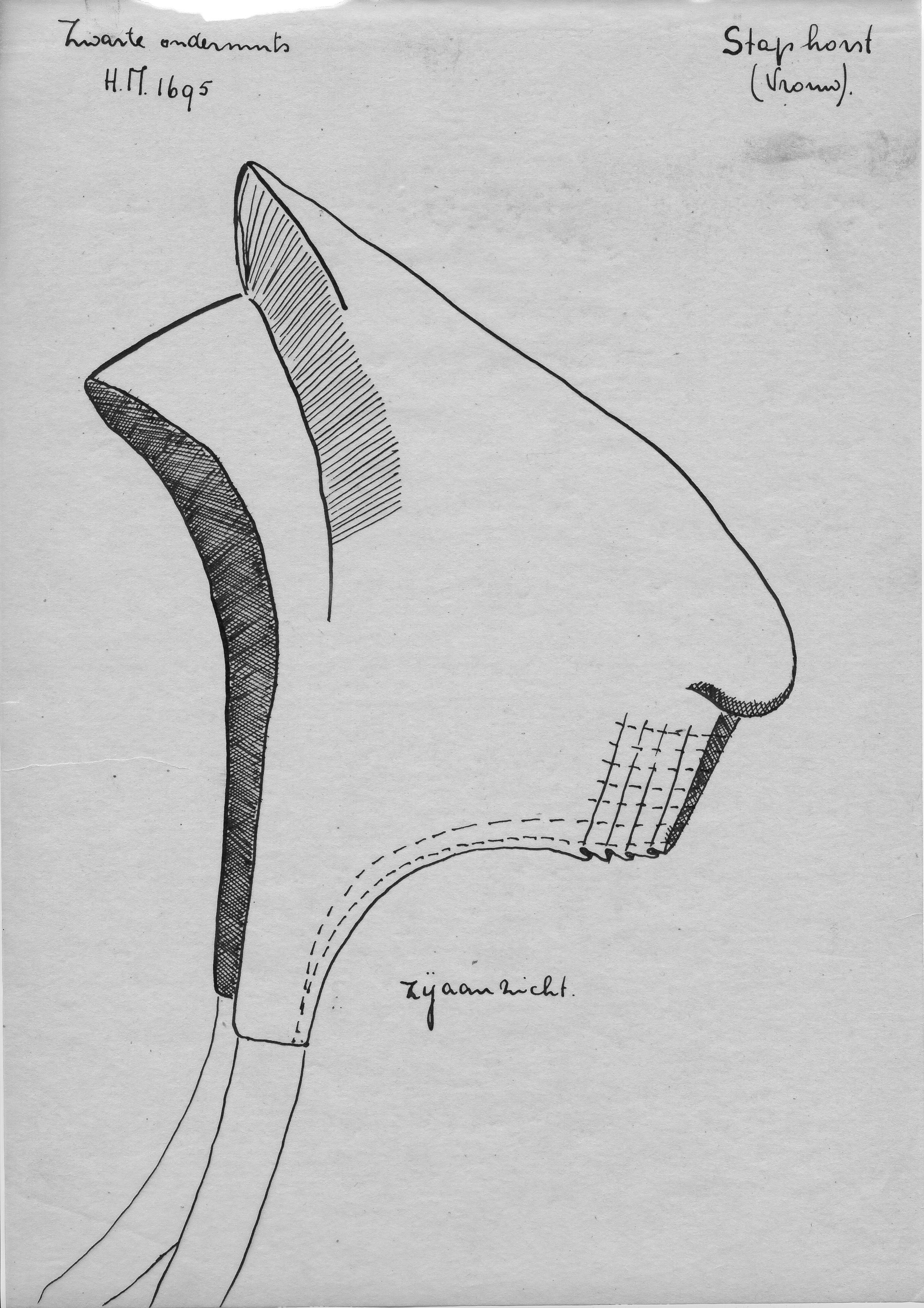 Tekening van een zwarte ondermuts, Staphorst (opmeti...
