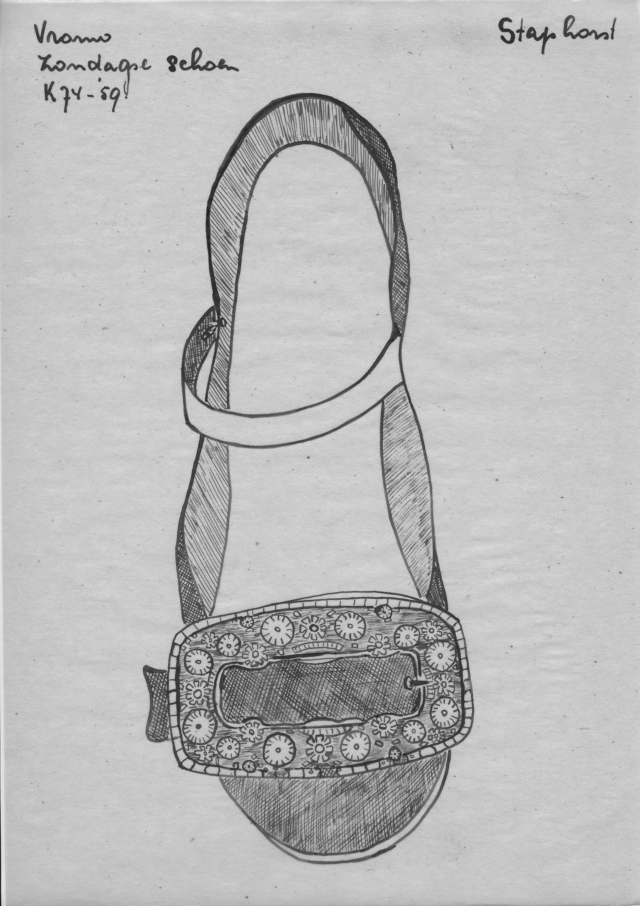 Tekening van een zondagse schoen, Staphorst (opmetin...