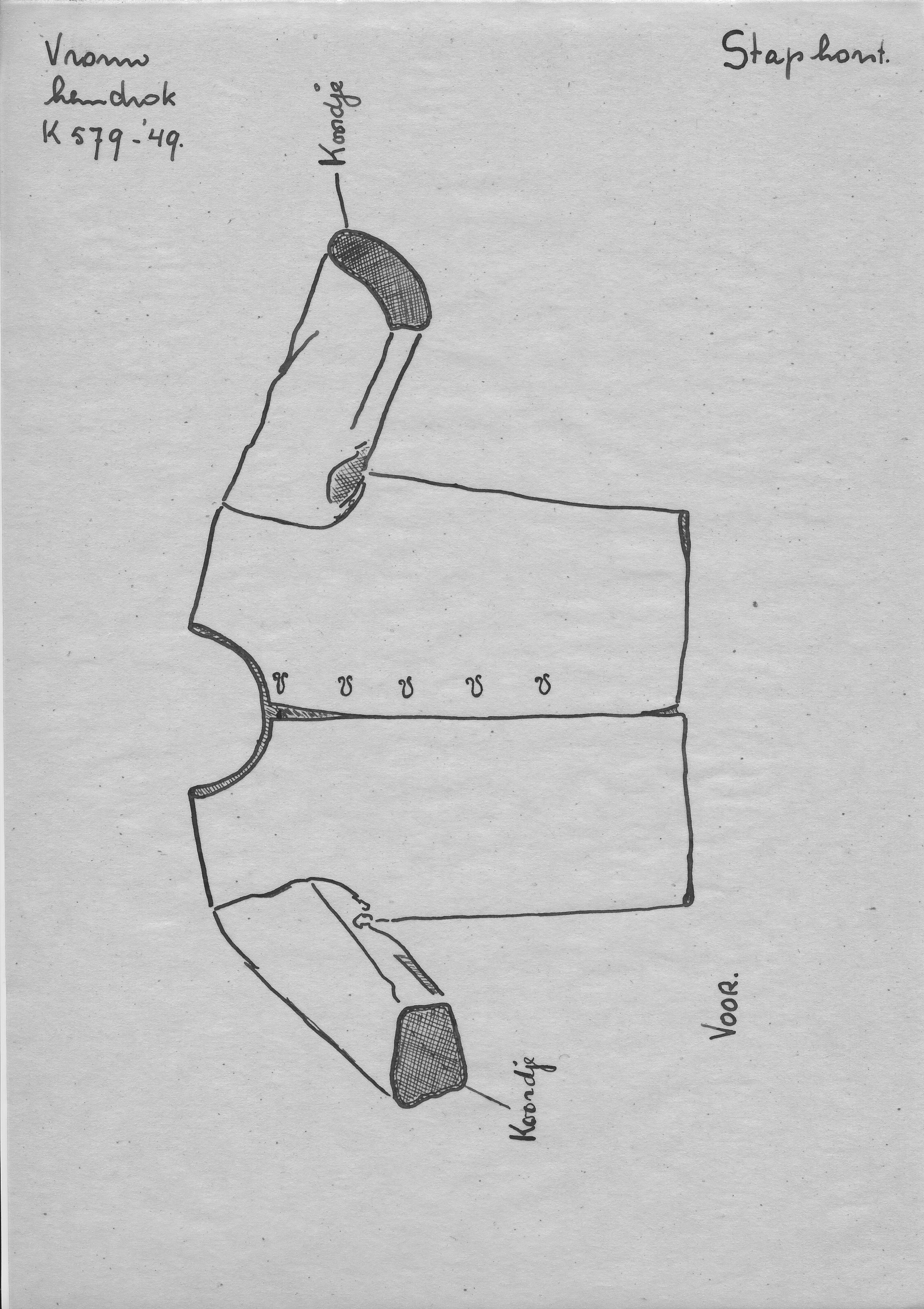 Tekening van een hemdrok, Staphorst (opmetingstekening)